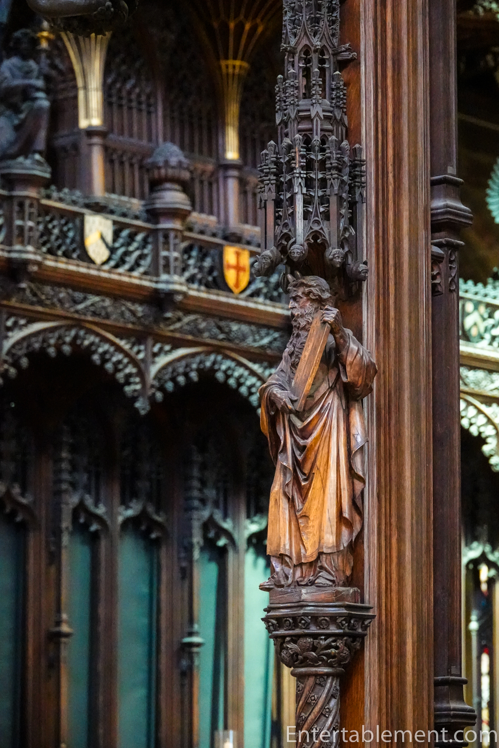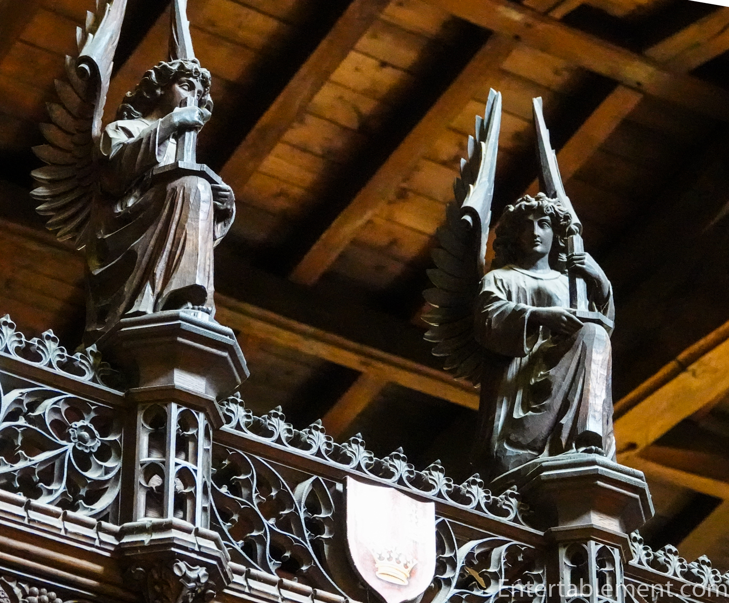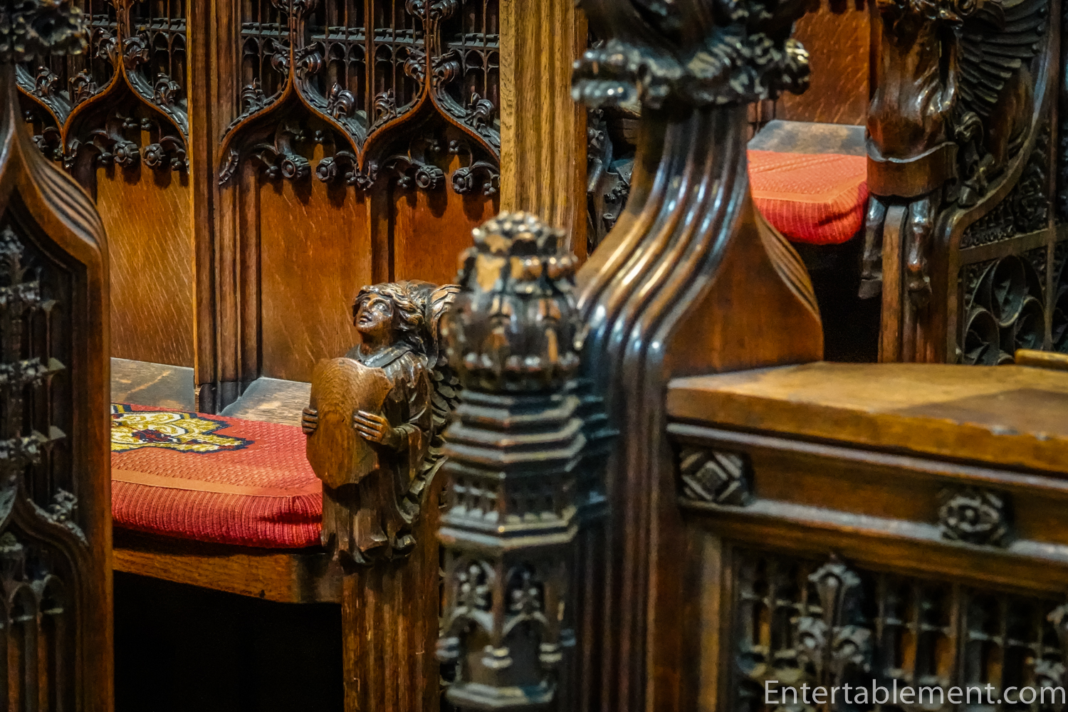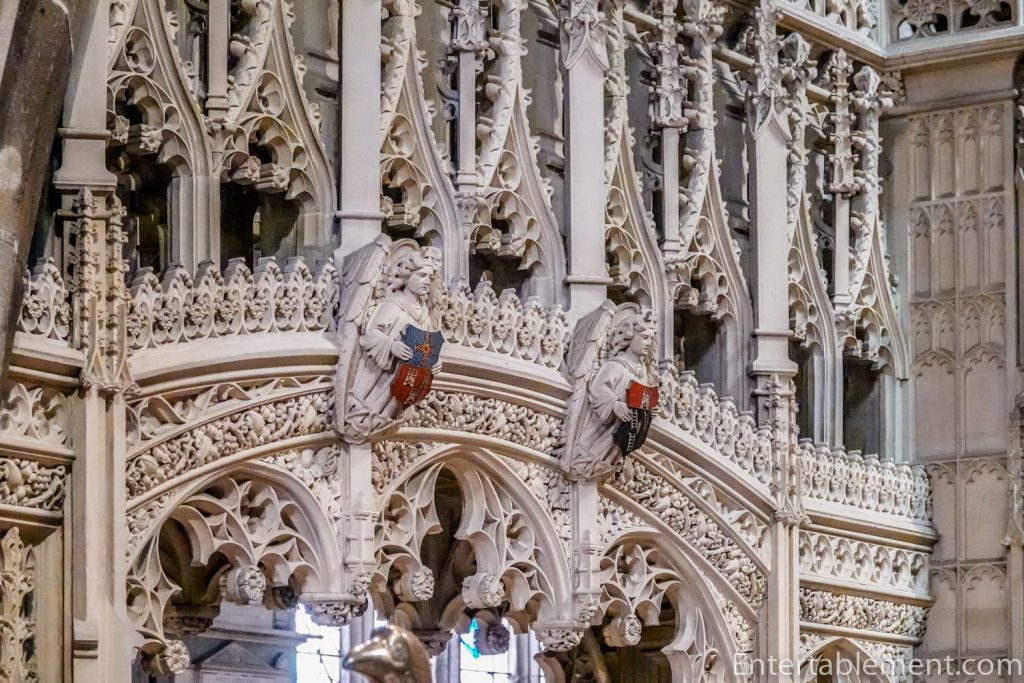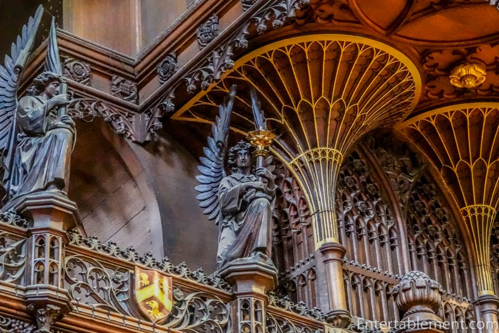 Above the choir stalls are more angels