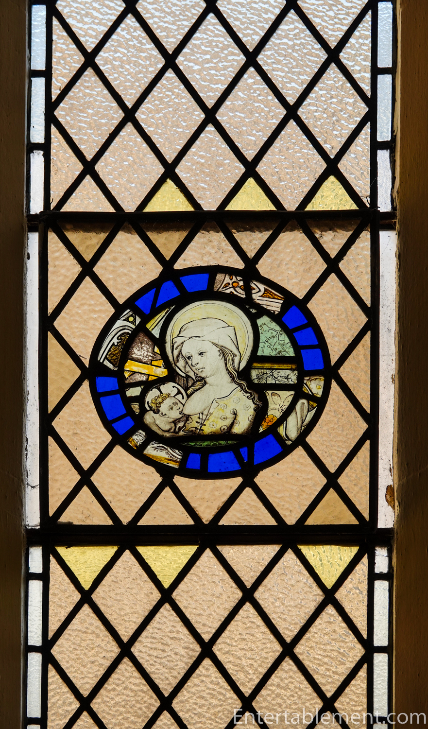 The lovely roundel of Madonna and Christ Child in St Margaret’s Chapel is the only known fragment of medieval stained glass in the Cathedral,