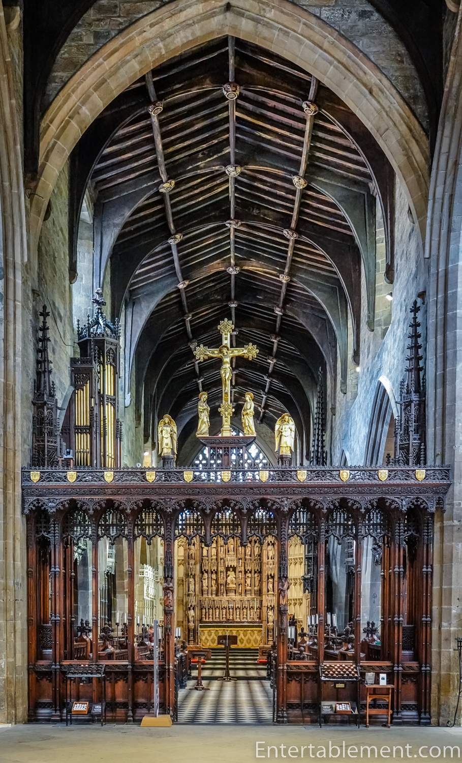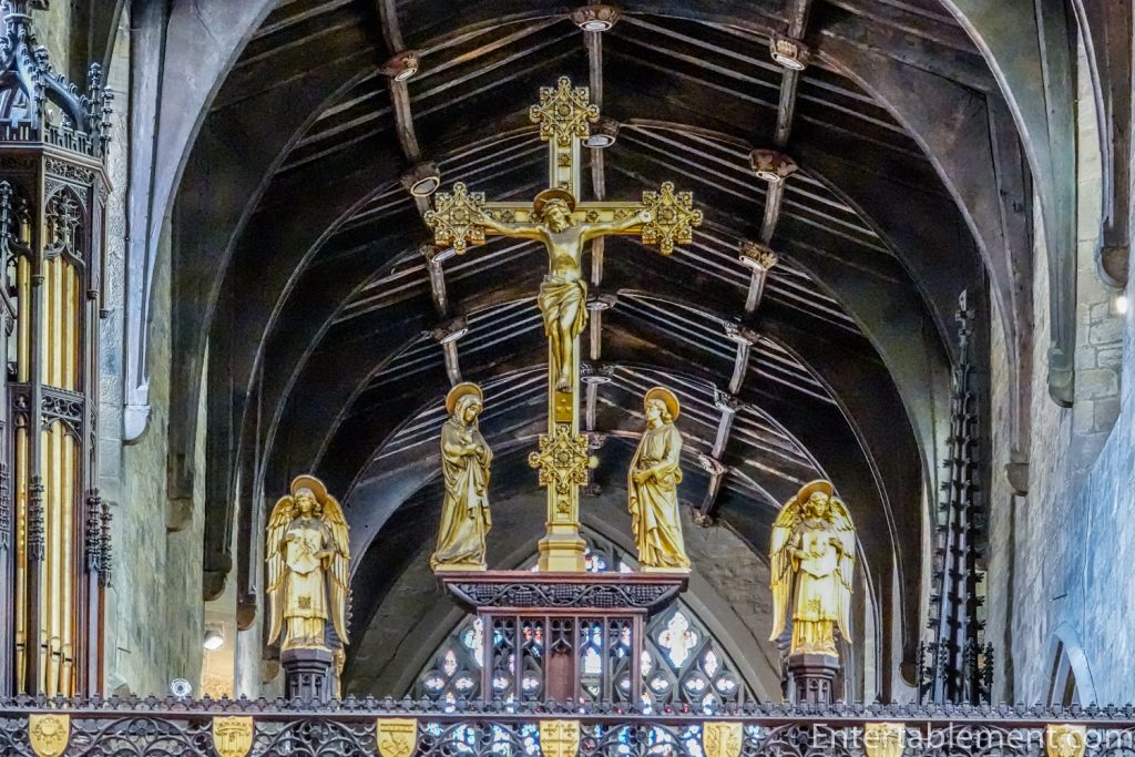 Soaring over the pulpitum leading into the choir, angels flank the Crucifix grouping.