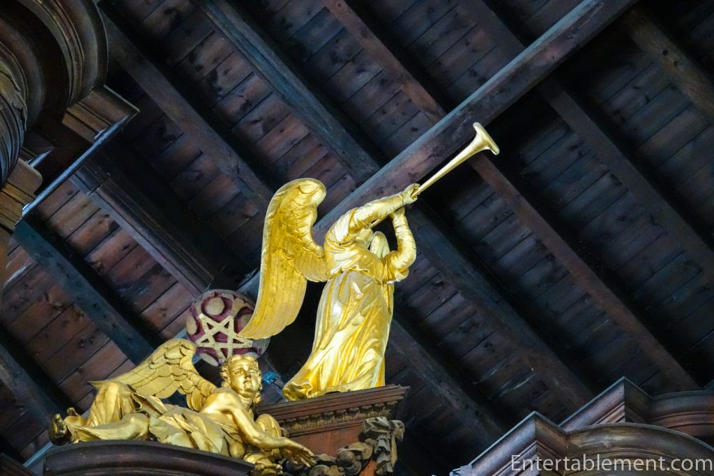 An angel sounds a trumpet atop the organ, parts of which stretch back to 1676 when Newcastle Corporation contributed £300 towards a church organ at St Nicholas’.