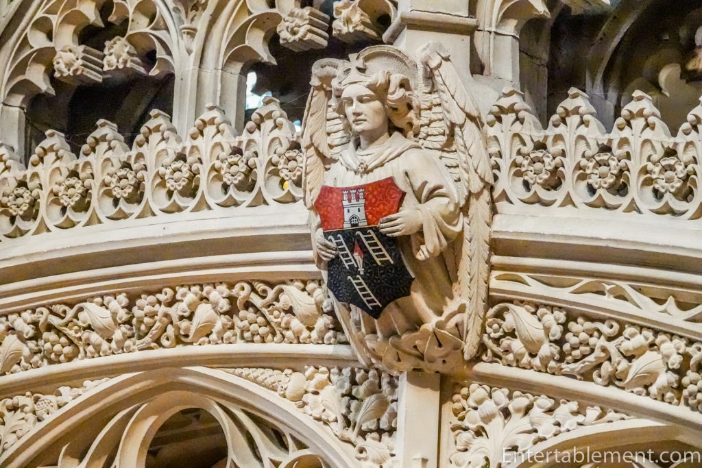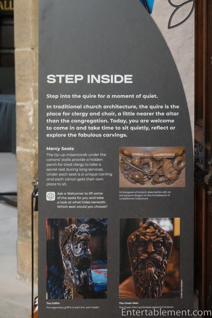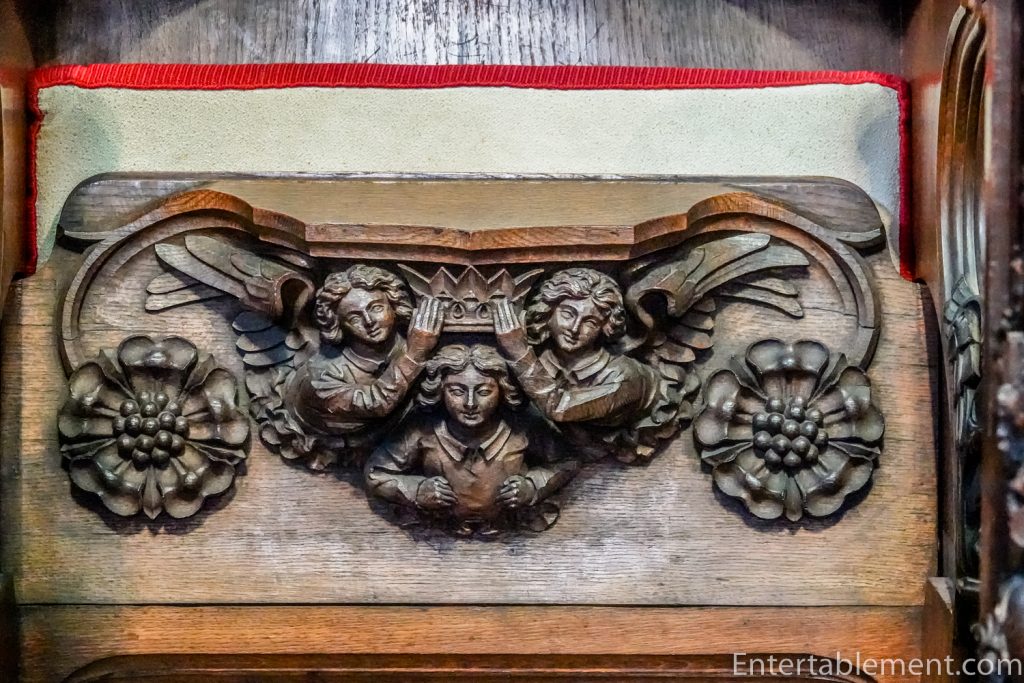 Likewise, the beautifully carved misericords feature angels…