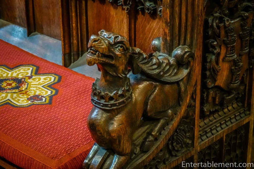 Hedley didn’t miss a trick with this recreation of the choir in medieval style. What beast sports such a marvellous collar?