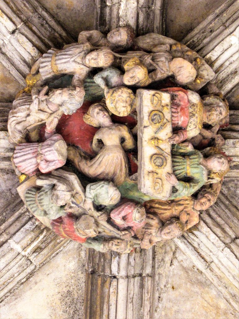 The vaulted ceilings contain 400 carved stone ceiling bosses.