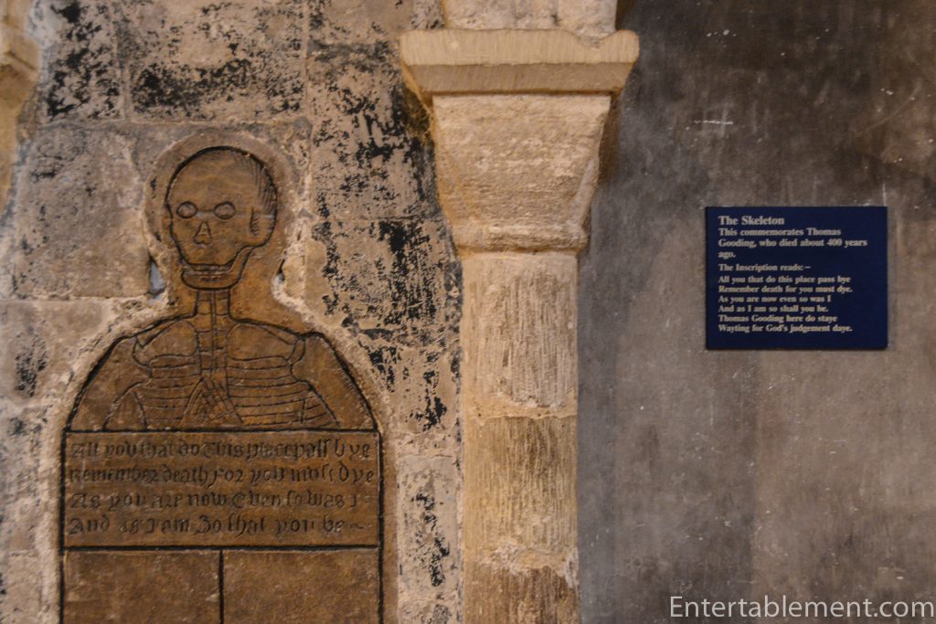 A modest memorial to Thomas Gooding, a mason of Norwich Cathedral who died in 1600, is in the south aisle of the nave. He insisted on being buried upright, believing it would speed his way to heaven during the ugly rush on Judgment Day.