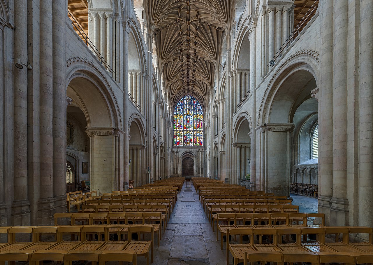 Begun in 1109 and completed around 1145, Norwich Cathedral was built all of a piece. And with ample funds available, it avoided subsequent eastern additions containing saintly relics to attract pilgrims—a coffer-swelling attraction routinely employed by cathedrals less fortunately endowed.