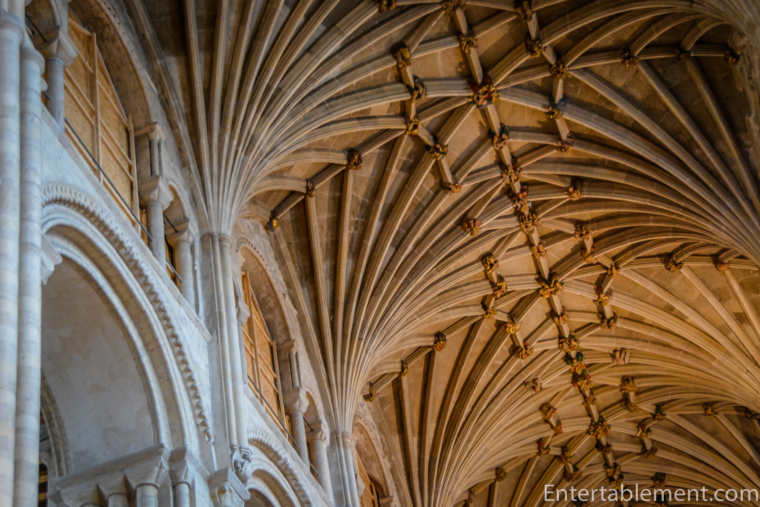 Looking up into the underside of one of the arches, it’s dizzying to see the height of the heavily bossed vault above.