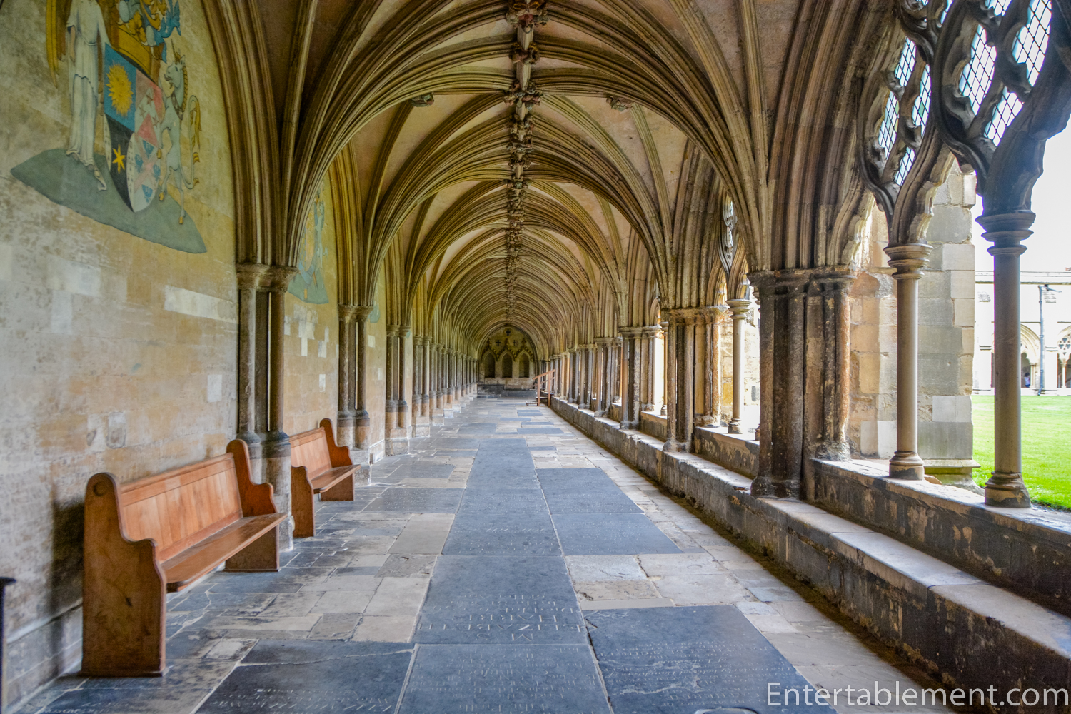 The vaulted ceilings contain 400 carved stone ceiling bosses.