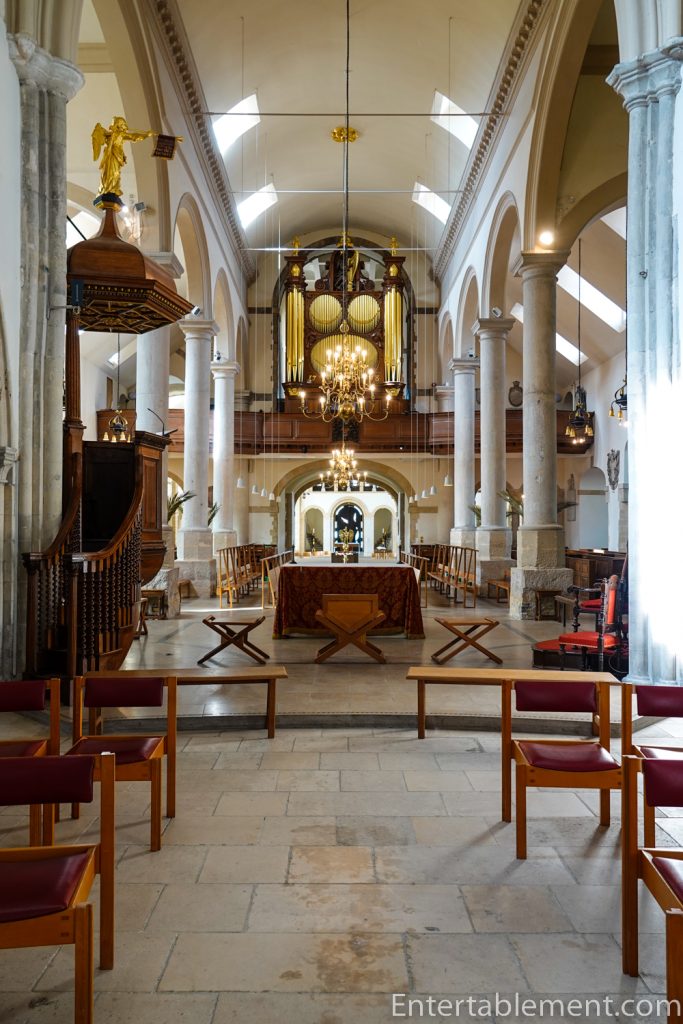 Charles II, safely back on the throne after the Restoration in 1660, undertook a campaign to repair churches across the country. Portsmouth’s choir was rebuilt in the classical style. The lantern and cupola for the restored tower popped up in 1703. Twenty years later, galleries were added to accommodate the growing congregation and extended in 1750.