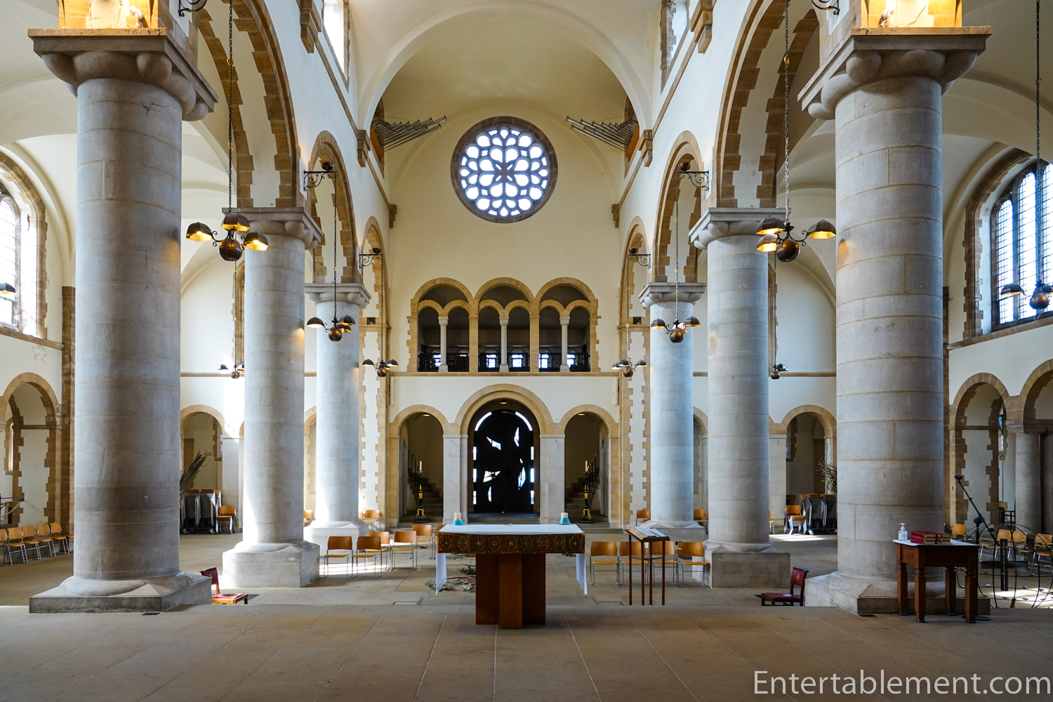 But WWII intervened. By June 1940, work on the extension scheme had ground to a halt. The bays of the nave were blocked off with a “temporary” brick wall to remain for more than fifty years.