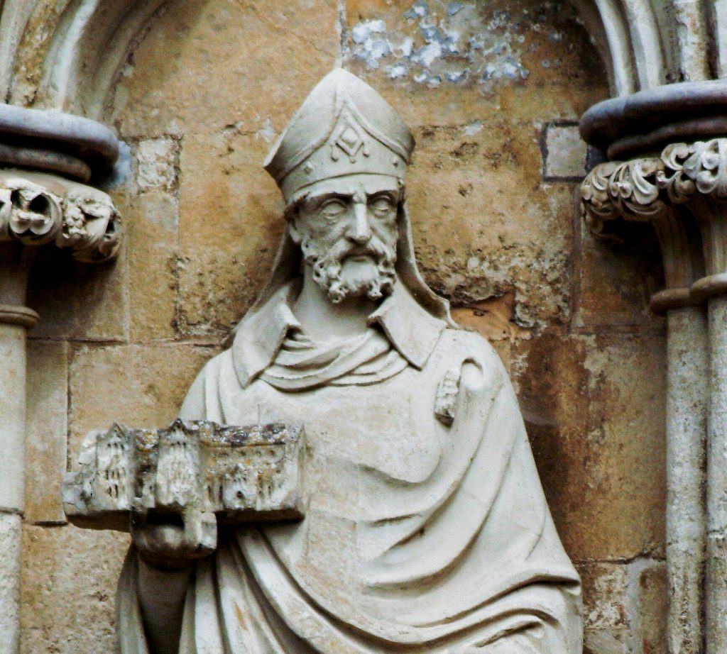 The one on the West Face is Bishop Poore, who served during the time the Cathedral was under construction.