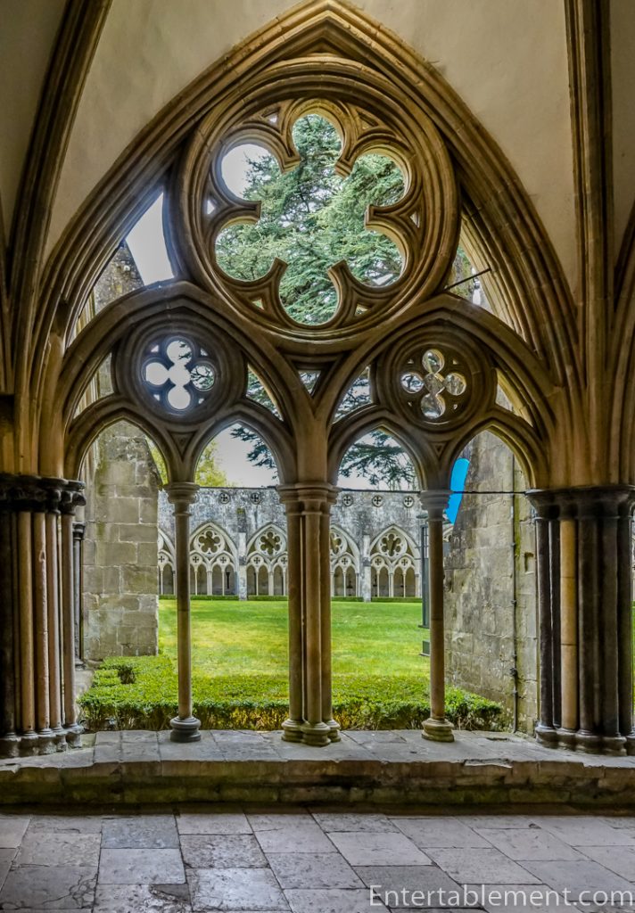 Salisbury was never a monastic Cathedral, so its cloisters were a practical and comfortable way of getting from one place to the next rather than serving a spiritual purpose. Nonetheless, they are the largest and among the best-preserved cloisters of England’s Cathedrals. Unlike Norwich’s, which were built over several architectural periods, Salisbury’s are very uniform in style.