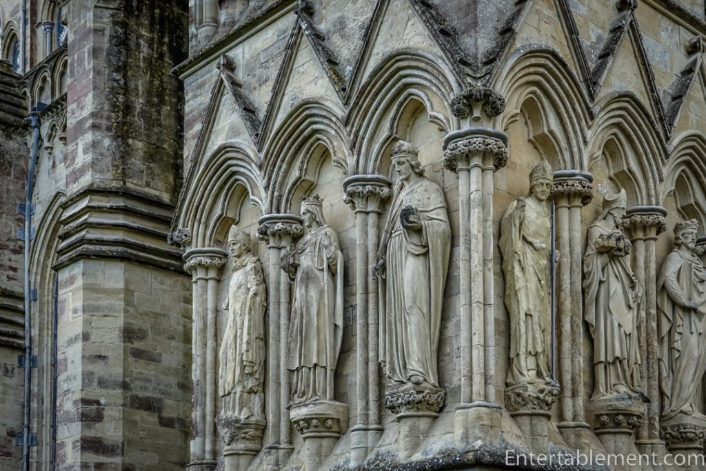 Critics, including the very knowledgeable Simon Jenkins, have panned the west front for lacking a compositional theme. He’s not alone in his criticisms—others find it a jumbled mess of styles and a poor imitation of the front at Wells Cathedral.