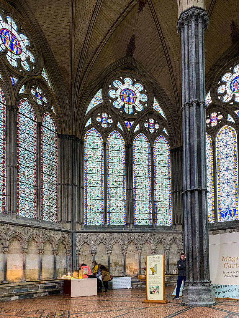 Here we will visit Salisbury’s copy of the Magna Carta, which is in its Chapter House, the location likely chosen for the controlled access.