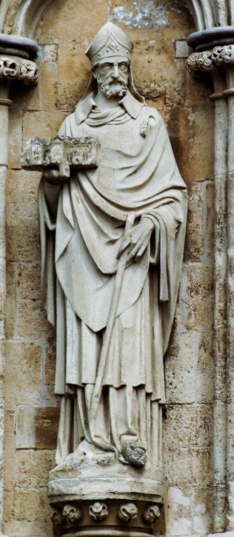 The one on the West Face is Bishop Poore, who served during the time the Cathedral was under construction.