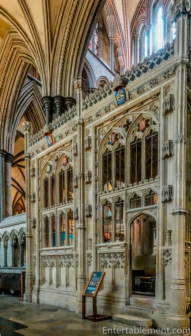 Salisbury was never a monastic Cathedral, so its cloisters were a practical and comfortable way of getting from one place to the next rather than serving a spiritual purpose. Nonetheless, they are the largest and among the best-preserved cloisters of England’s Cathedrals. Unlike Norwich’s, which were built over several architectural periods, Salisbury’s are very uniform in style.