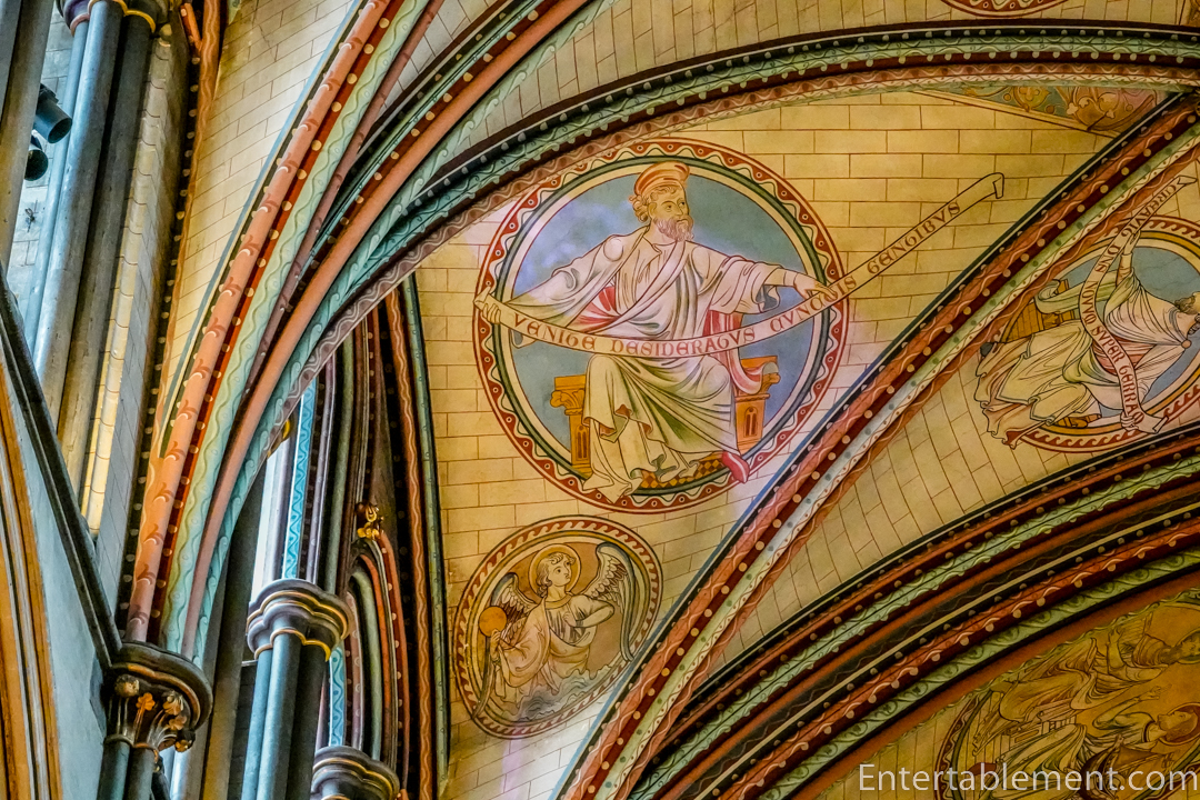 Based on the original 13th-century designs, the ceiling was painted by Clayton and Bell in the 19th century.