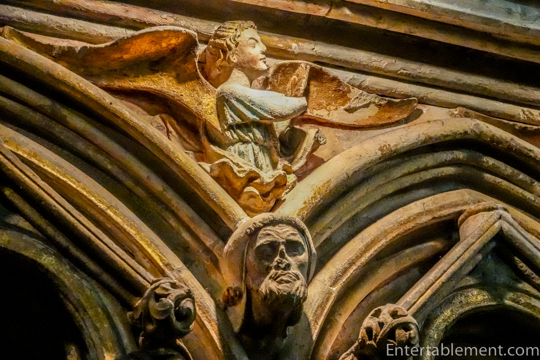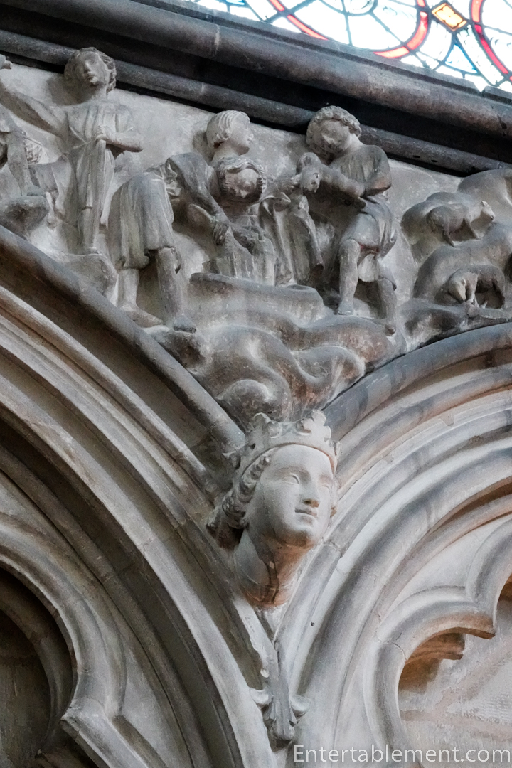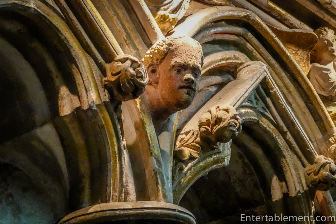 The heads carved above the canon’s seats at the base of the windows are exceedingly well done.