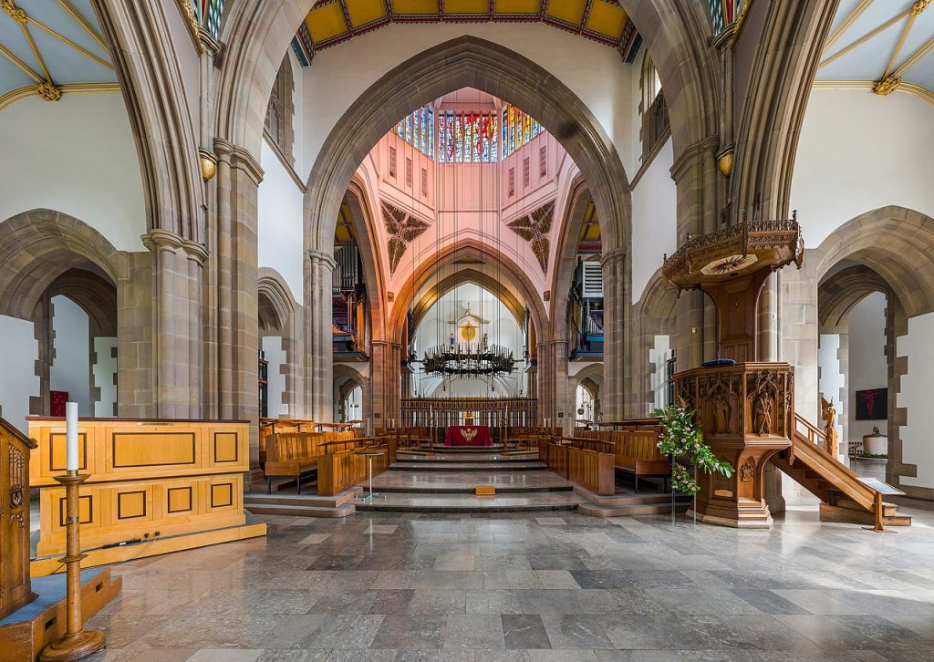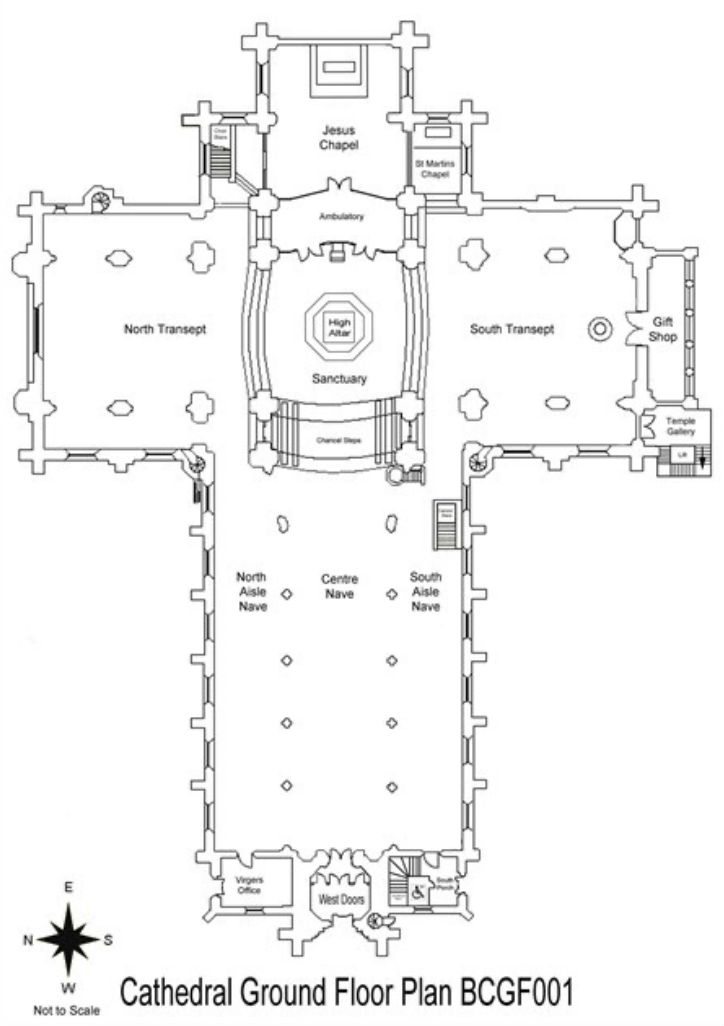 King adapted Forsyth’s design, replacing the proposed central tower with a lantern and placing the sanctuary directly beneath it in the central crossing.