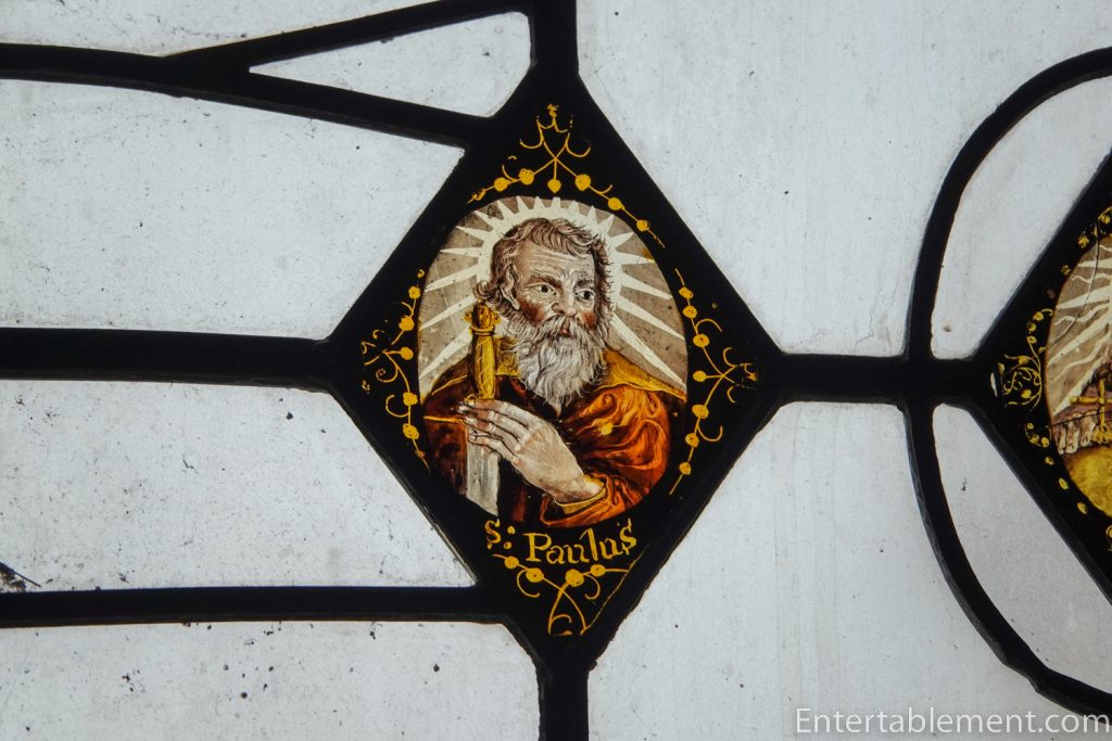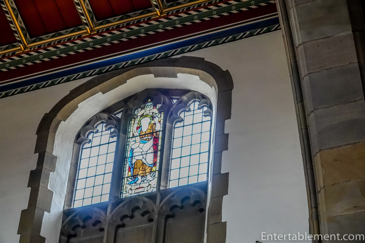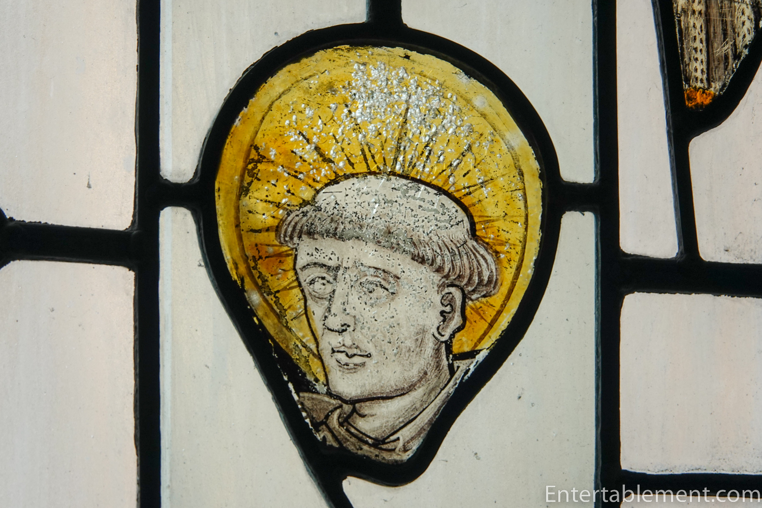 In the fourteenth century, St. Mary’s was rebuilt in the Decorated style during the reign of King Edward III, but that church suffered horribly at the hands of Cromwell’s henchmen, and only fragments of glass from the medieval church survive.