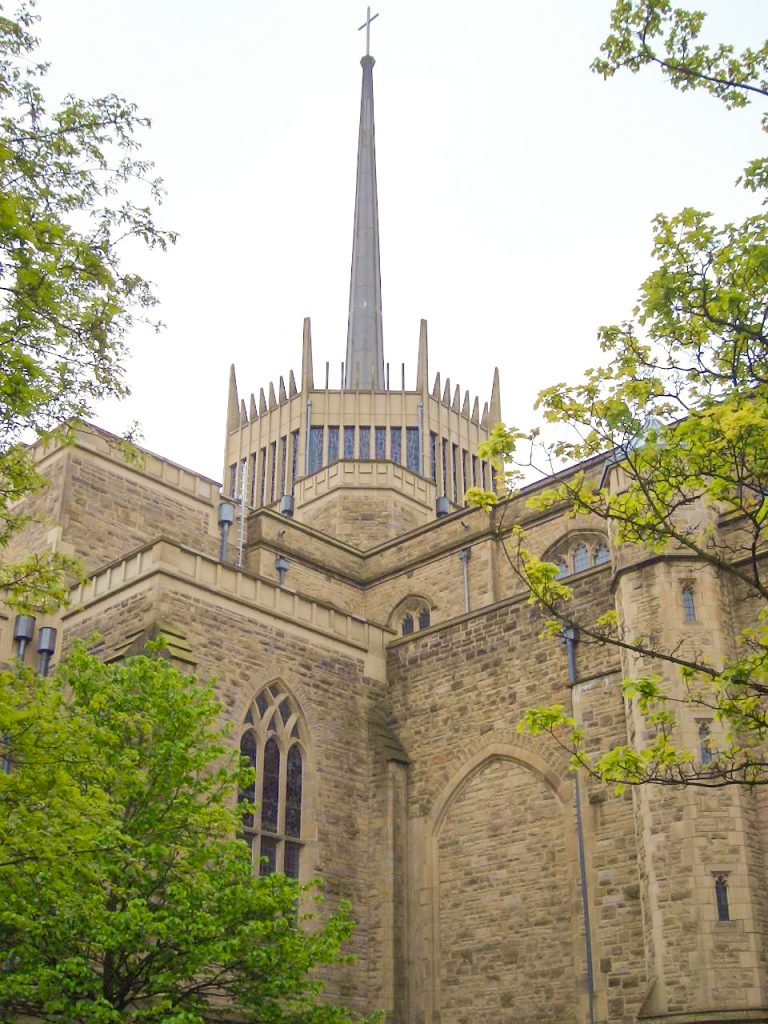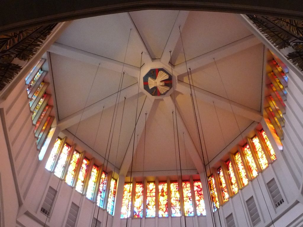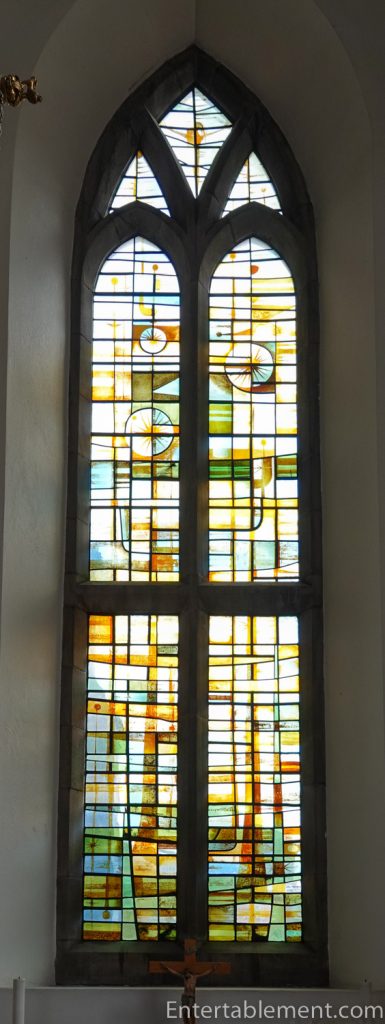 Churches “in the round” were very popular in the 60s—my mother’s famous raised eyebrow was lost in her hairline when our new parish church was built along similar lines. Worse, I thought she would have an apoplexy when confronted with the modern stained glass. Having attended convent boarding under the auspices of Jesuit nuns, my mother had very fixed ideas about ecclesiastical architecture. She had emigrated to Canada by the time Blackburn was built. Thank heaven.
