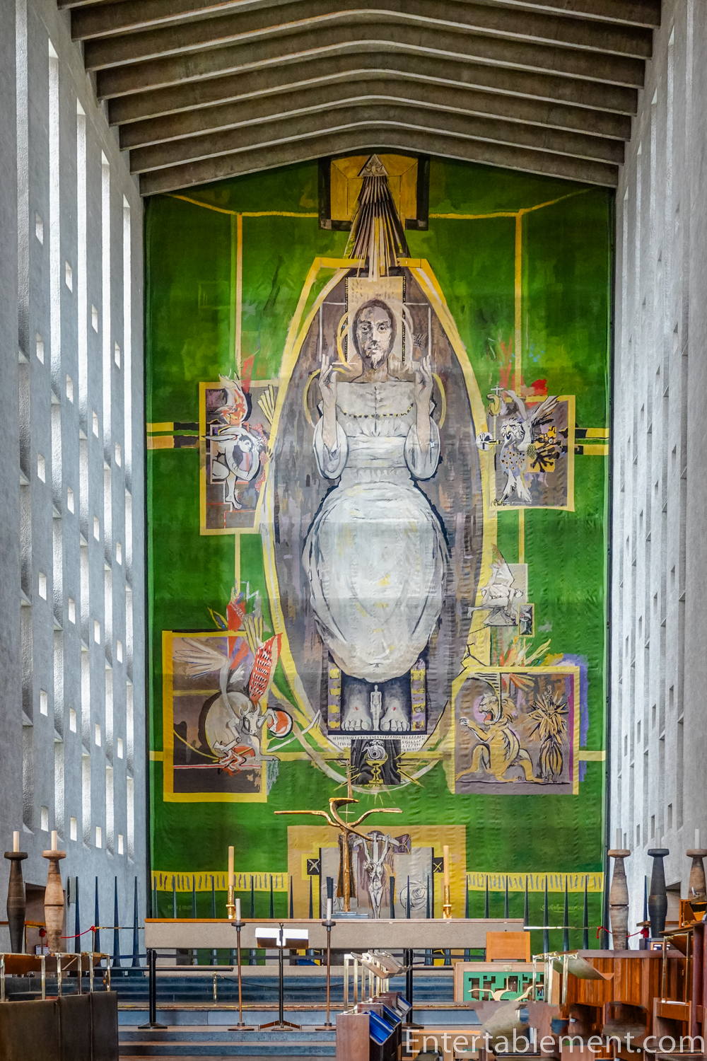 At Blackburn, the Worker Christ at the rear of the nave is also by John Hayward, the artist who designed the Corona—enough said.
