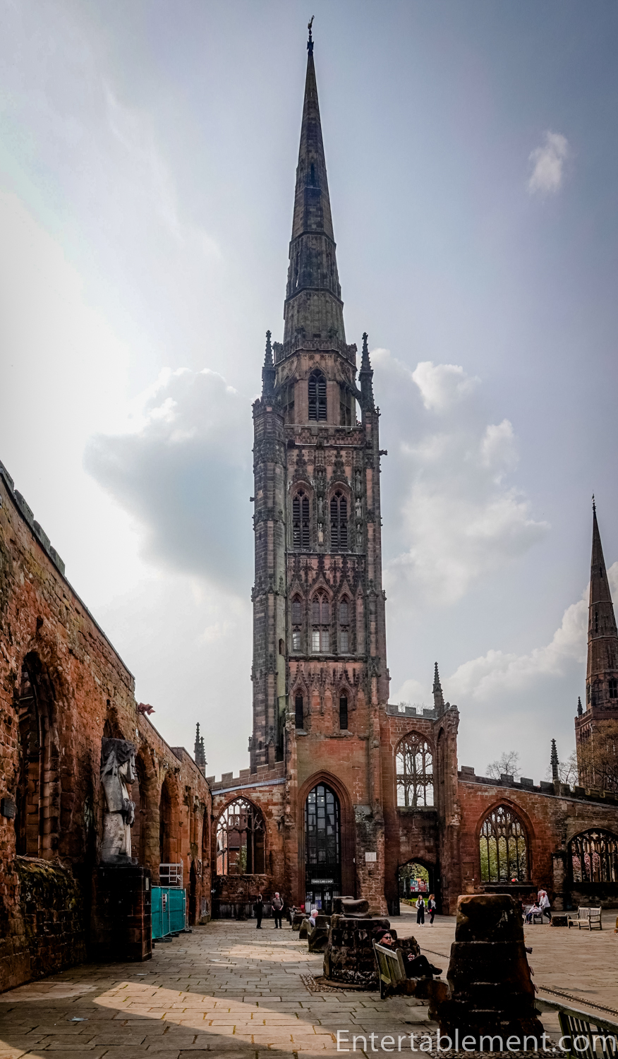 We visited Coventry in April 2019, just after Notre Dame Cathedral in Paris had been devastated by its own fire. It was heartbreaking to think that another treasured medieval Cathedral had suffered the same destruction (though by accident, not design, in Paris’ case).