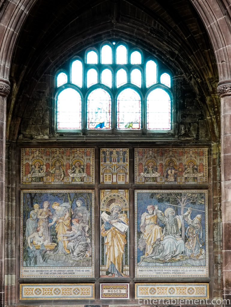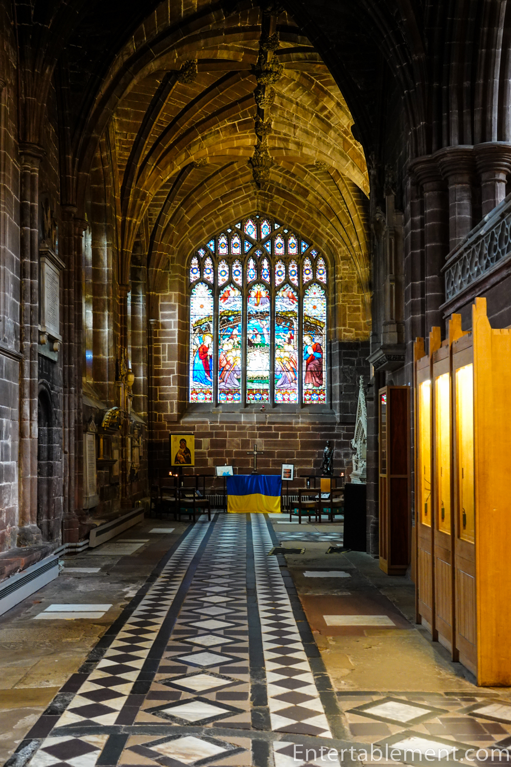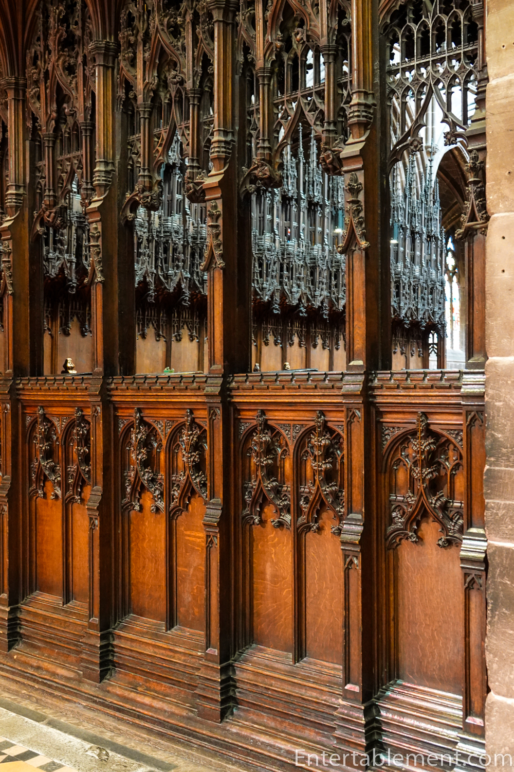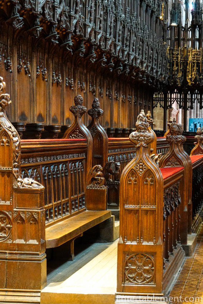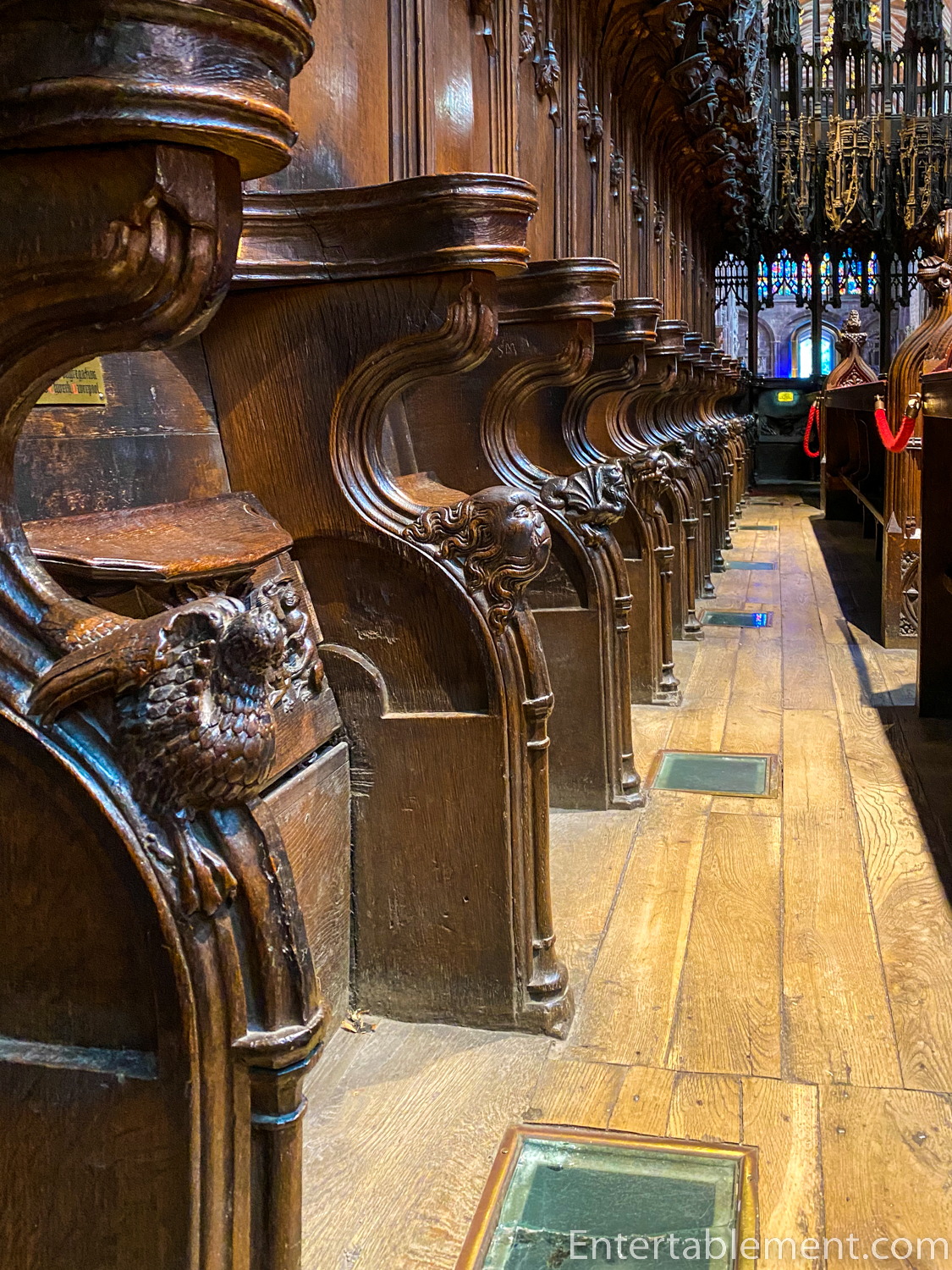 And, of course, the misericords—the medieval “mercy seats”, often with irreverent carvings on the bottoms of the upturned seats. Chester Cathedral boasts 48, all but five of which are original. They’re among the finest in the country, according to Nikolaus Pevsner, renowned art and architectural historian best known for his monumental 46-volume series of county-by-county guides.