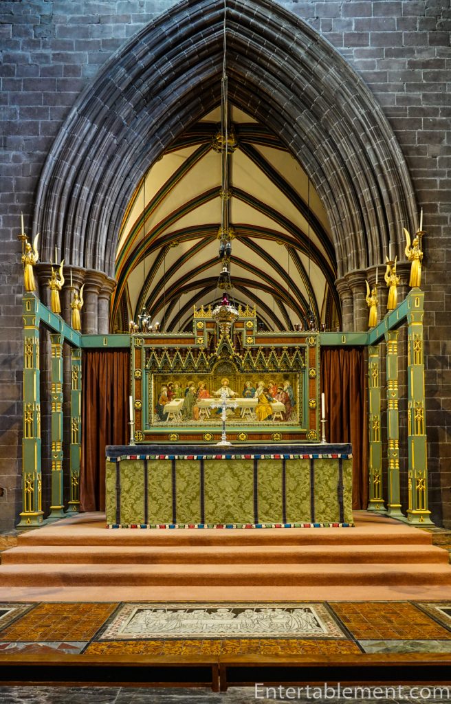 Once St. Oswald’s congregation had moved out, the solid screen erected in 1828 to separate the Cathedral from the South Transept also departed. Unfortunately, it was too late for Scott, but his successor, Sir Arthur Blomfield, did the restoration in 1882.