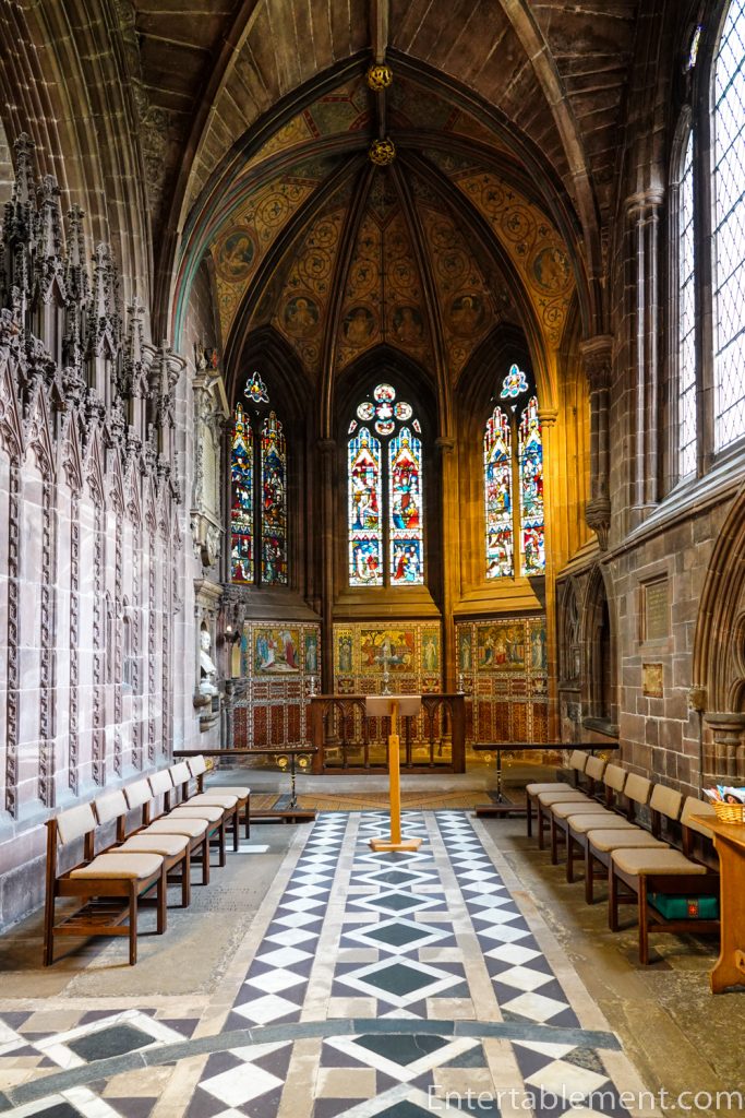 Personally, I found it charming—much more attractive than the somewhat blocky St Werburgh’s chapel, which terminates the North Choir Aisle.