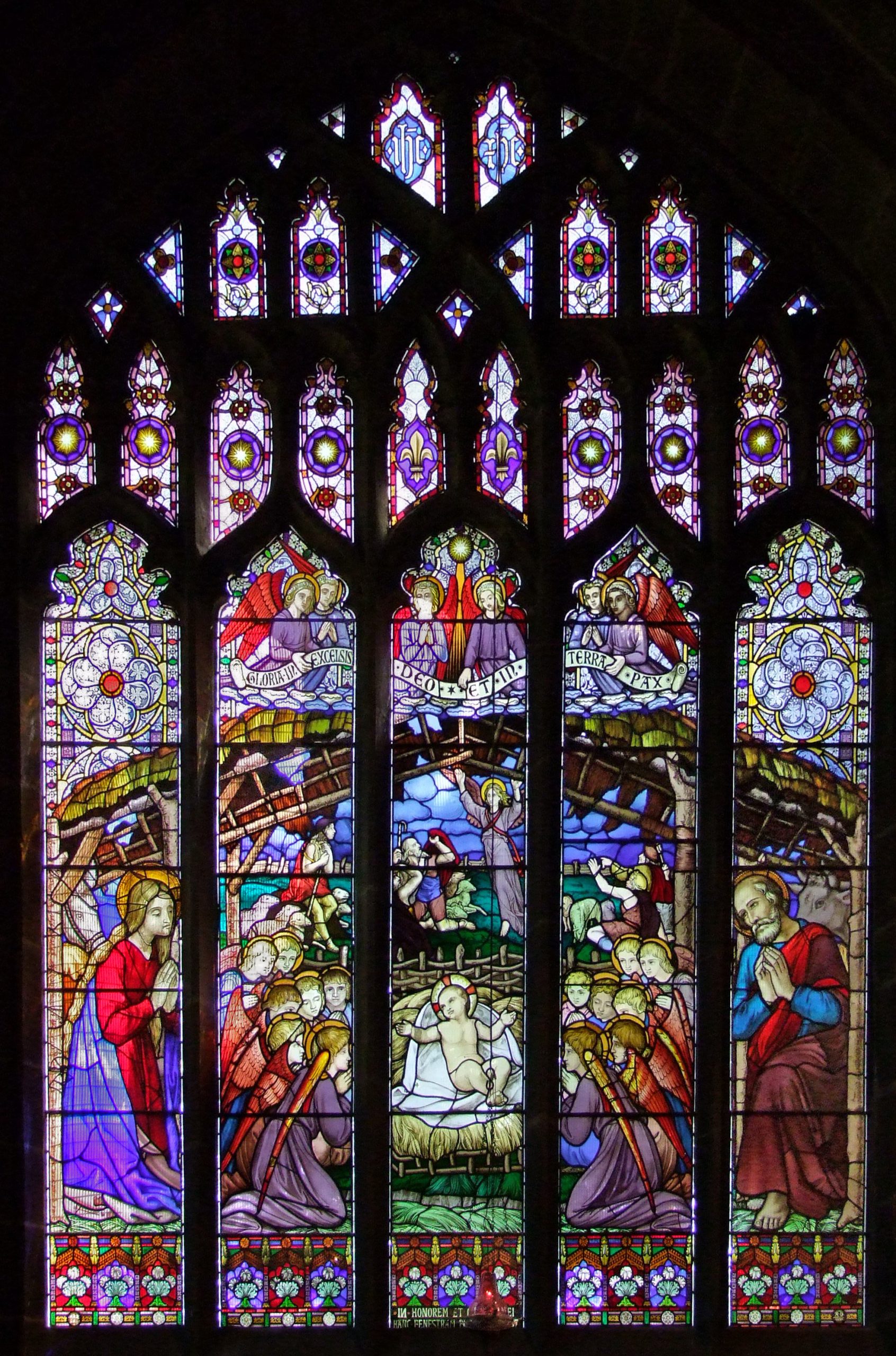 The “Baby Jesus Window” is one of the many Victorian stained glass windows.