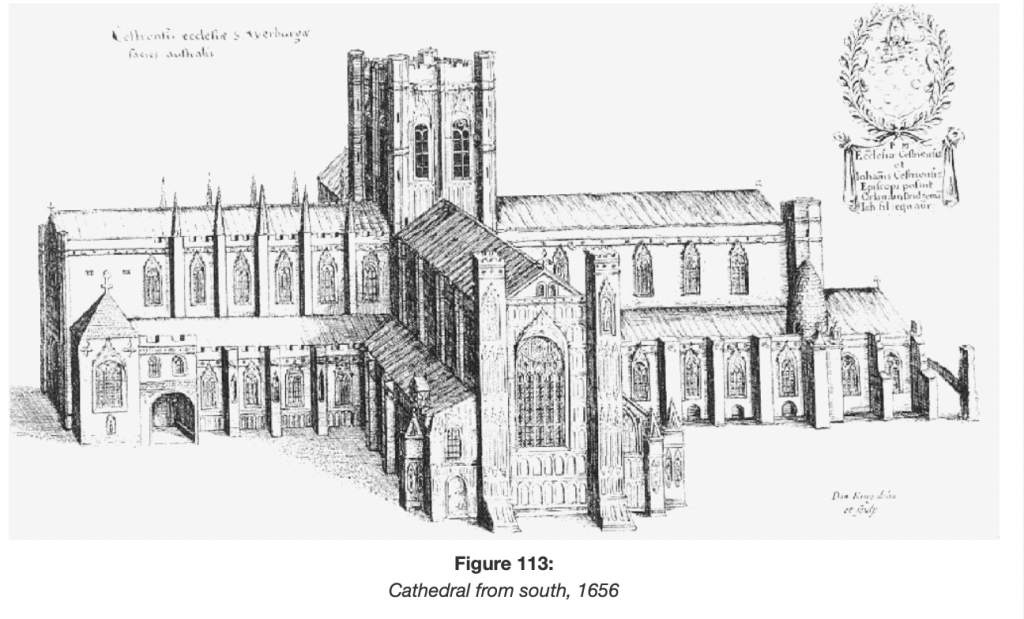 You can see the South Transept in the drawing below, with the oval door on its left side—no wonder it could serve as a separate church. But, unfortunately, Scott’s remit did not extend to its restoration.