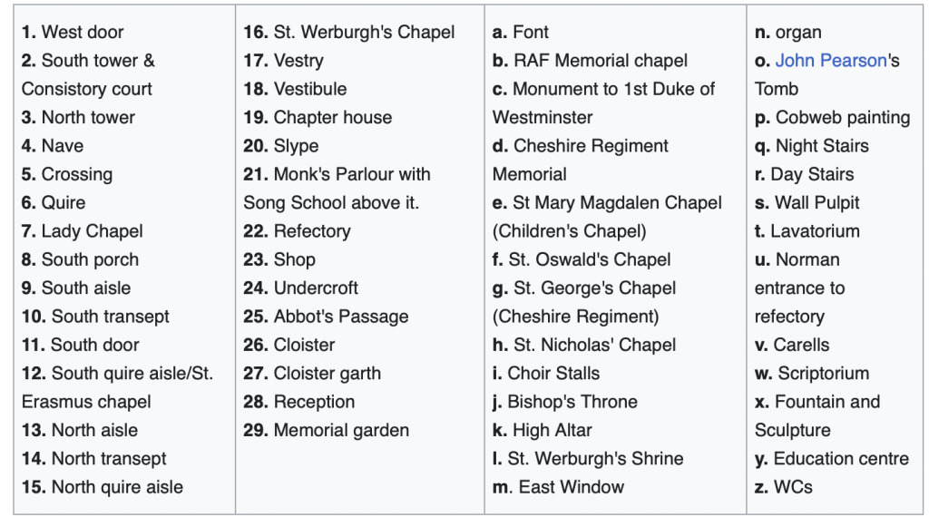 I’m eager to return to Chester and explore the city and the Cathedral more thoroughly. Unfortunately, we didn’t get a chance to explore the buildings surrounding the cloisters. There is also a tower tour, Chester Cathedral at Height, that affords excellent views over the interior of the Nave.