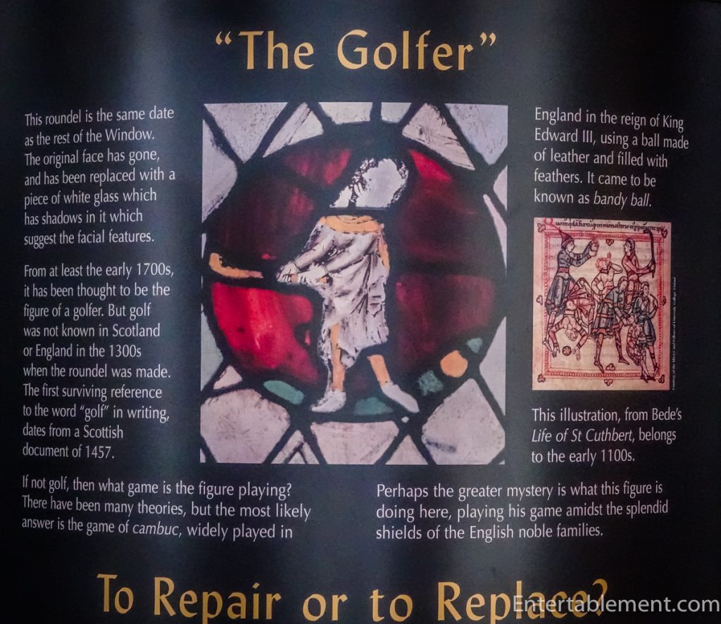 We also discovered a fun figure in one of the stained glass windows. Doesn’t this fellow look like a golfer?
