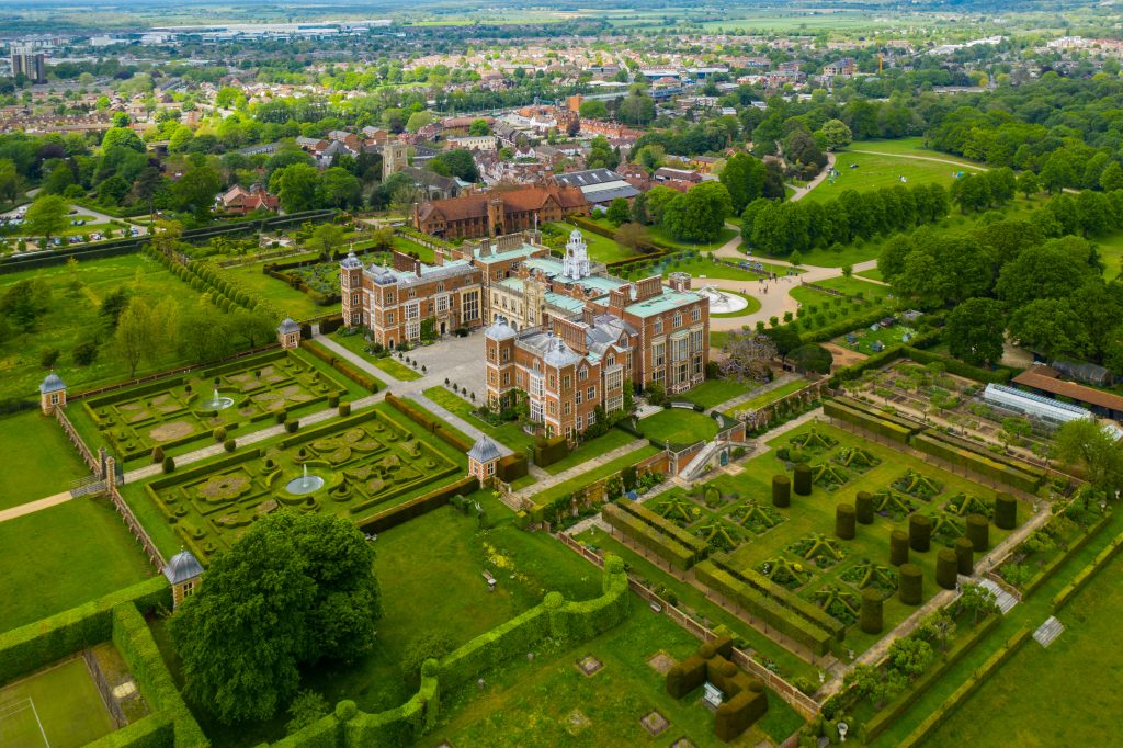 This aerial view gives us a good sense of how the two properties align: the Old Palace in the background and the newer Hatfield House (which will get its own well-deserved write-up) front and centre.