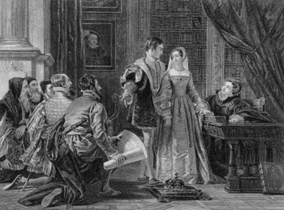 On July 10, 1553, Northumberland and his supporters proclaimed Lady Jane Grey Queen; at the same time, Mary’s letter proclaiming herself Queen was delivered to the Council in London. Two days later, Northumberland’s support crumbled, the Council switched sides, Jane was deposed, and Mary was declared Queen on July 19.