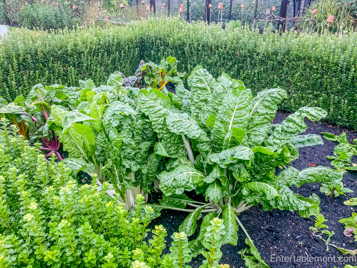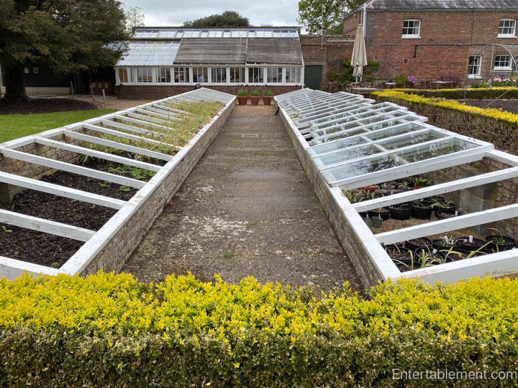 The garden contains excellent “business areas” examples, including cold frames and glass houses.