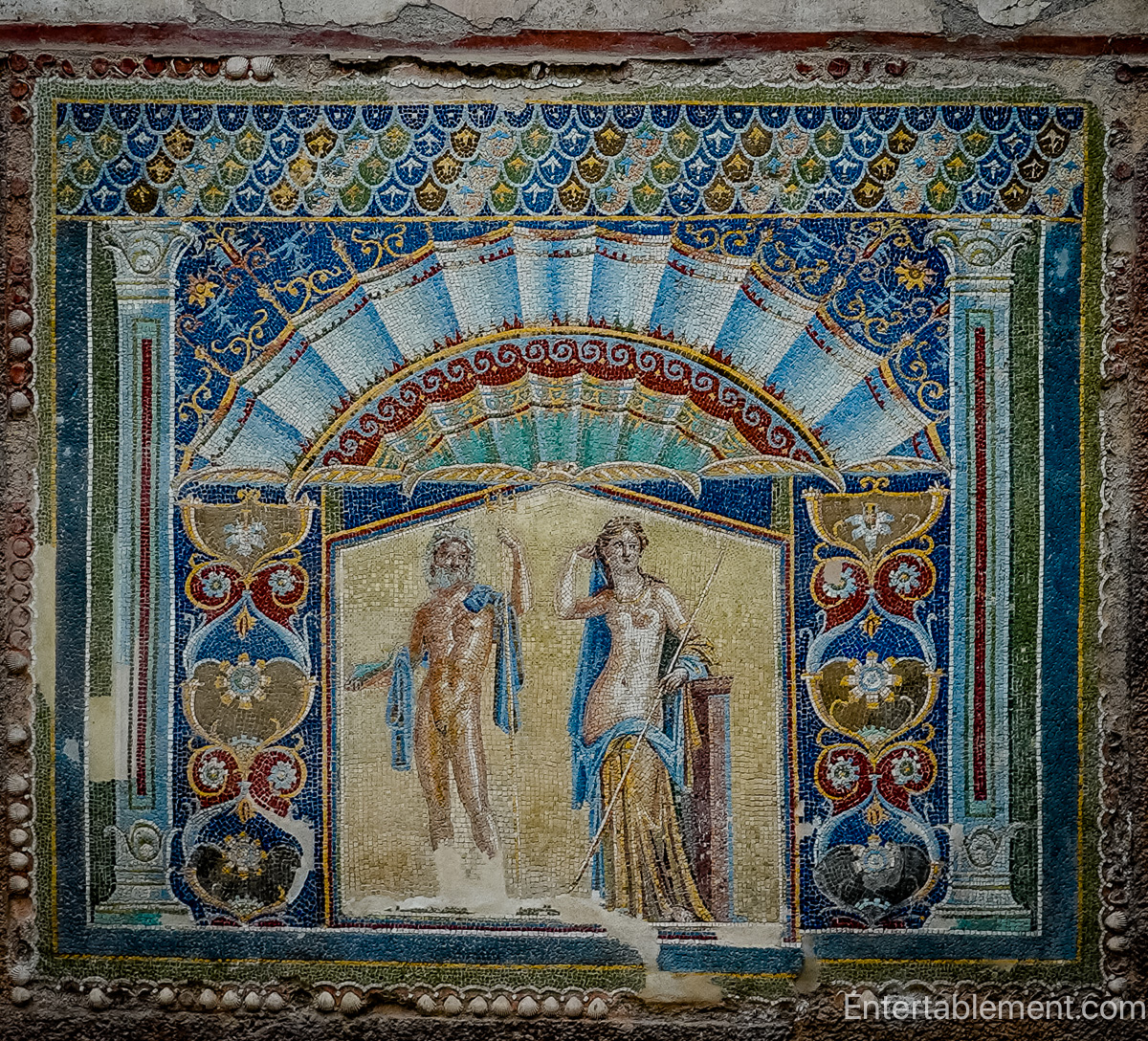 They had hot and cold running water, baths, and even glass windows. Fishbourne Villa in Sussex, begun as early as AD 75, covered a vast area suspected to be more than 100 rooms with 50 mosaic floors. More to come if archaeologists ever get to excavate the 75% of Fishbourne currently under the A27. Chedworth Villa in the Cotswolds featured an advanced plumbing system, plunge baths, and mosaics depicting everything from women’s fashion to Christian worship.