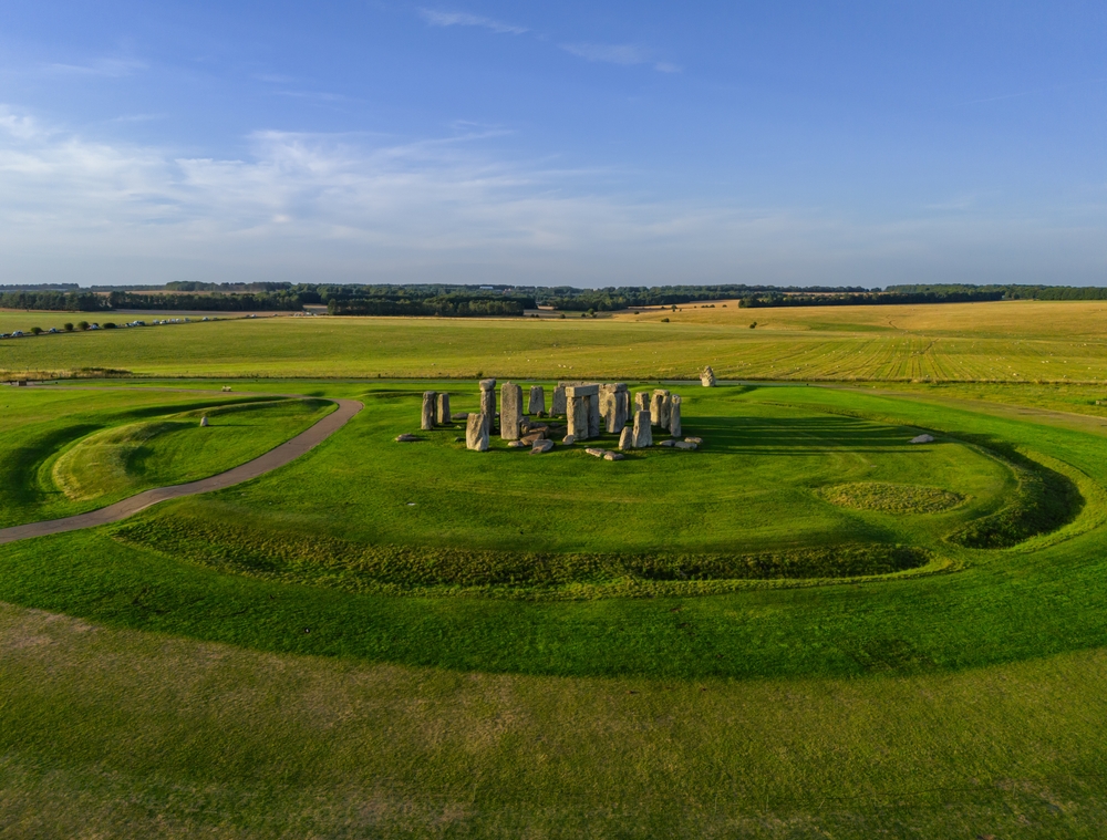 Scrapings from the inner ring of bluestones, transported from Wales, were found in burial pouches; perhaps they were held to have healing properties. Nearby, the 3 km long Neolithic Greater Cursus (a long barrow) was likely used for ceremonies or sports