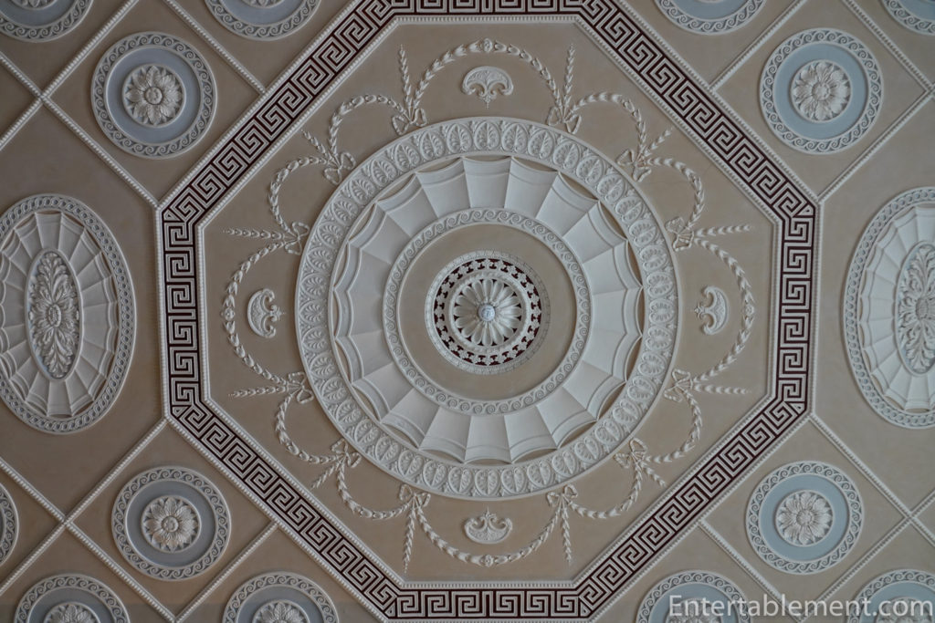 Robert Adam introduced the “Adam Style,” which blends classical forms with delicate decorative elements. He employed it to great effect in plaster ceilings and furniture. His Interiors featured panelling, ornamental plasterwork, and classical motifs (columns, pilasters, pediments).