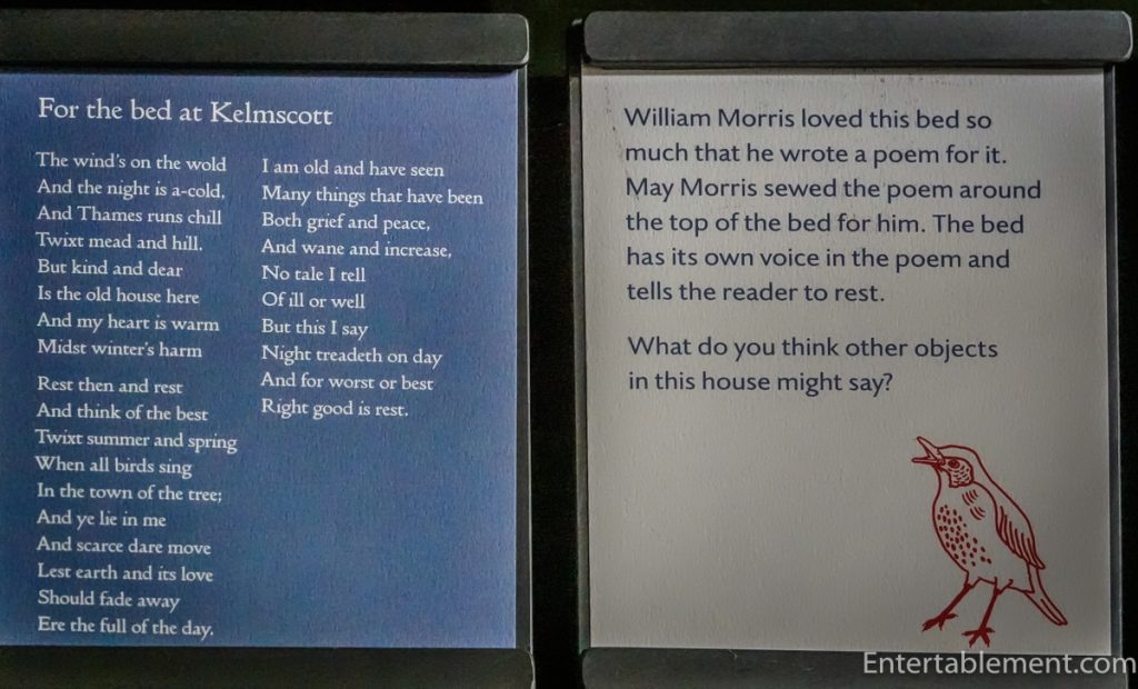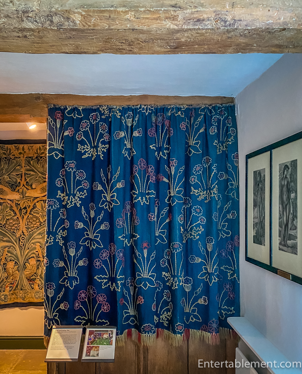 Jane Morris was a skilled embroiderer, and several of her hand-stitched textiles still adorn the manor. These intricate pieces—featuring birds, flowers, and flowing vines—were often inspired by medieval illuminated manuscripts and Persian motifs.