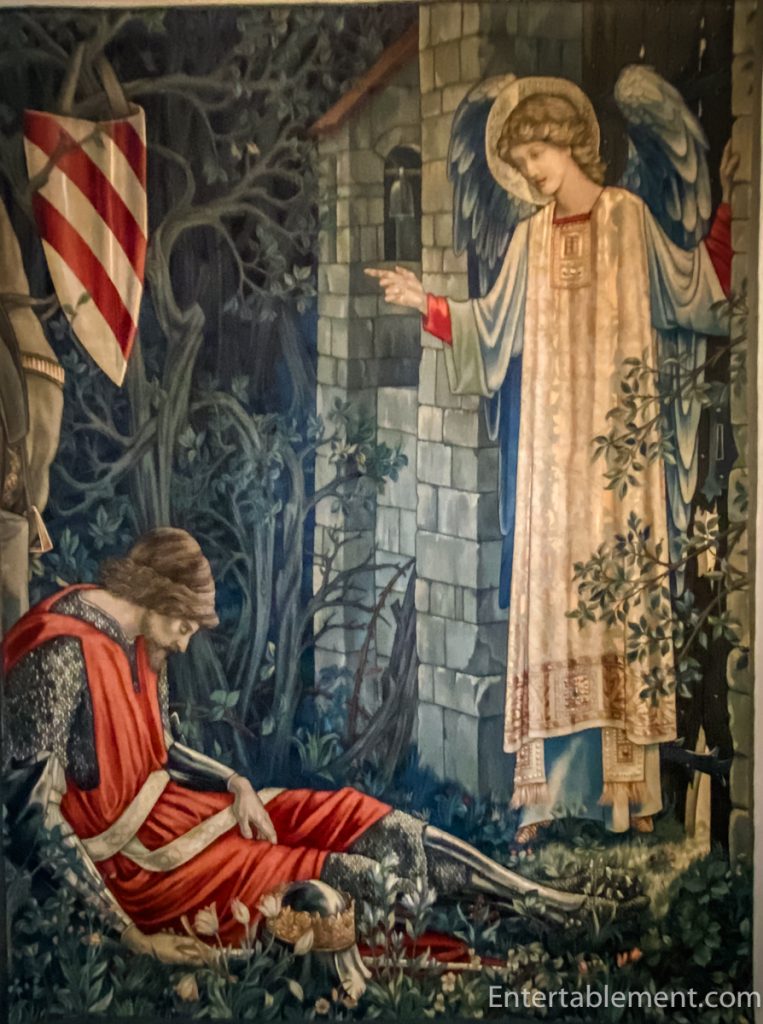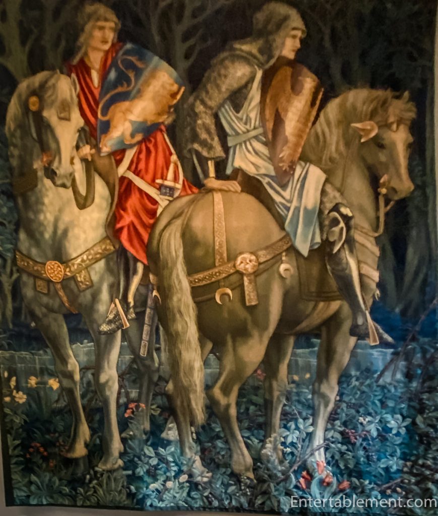 The intricate weaving technique speaks to the Arts & Crafts Movement’s fascination with medieval textiles.