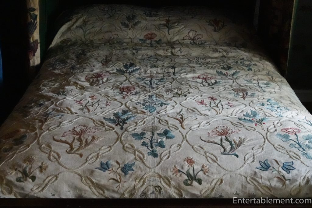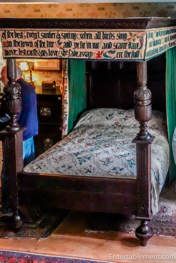 Some of the cushions and bed coverings display the fine needlework characteristic of the Arts & Crafts movement, which revered handcraftsmanship over mass production.