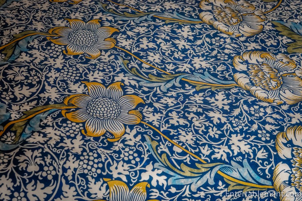Morris himself produced handwoven tapestries inspired by medieval craftsmanship. Though some original works have been relocated, the house preserves the spirit of his technique—natural dyes, dense floral motifs, and intricate detailing.