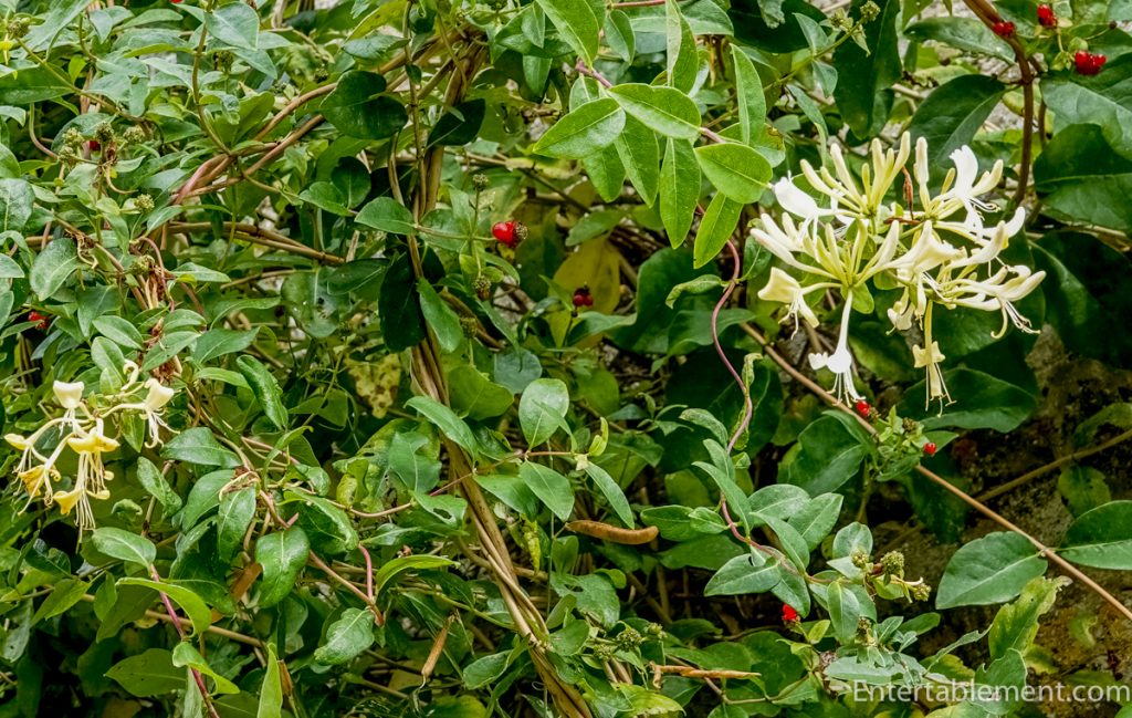 And…inspired by the same plants outside in the garden. It was fun trying to discover how many plant and fabric or wallpaper design matches I could count.