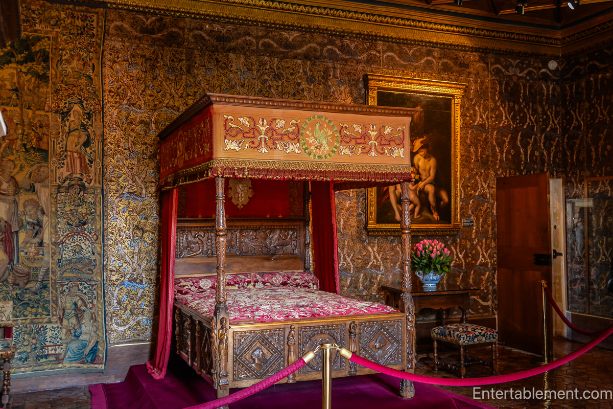 Tapestries of historic scenes surround the four-posters, whispering courtly intrigues.