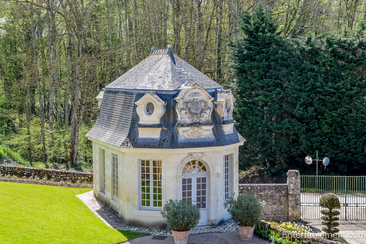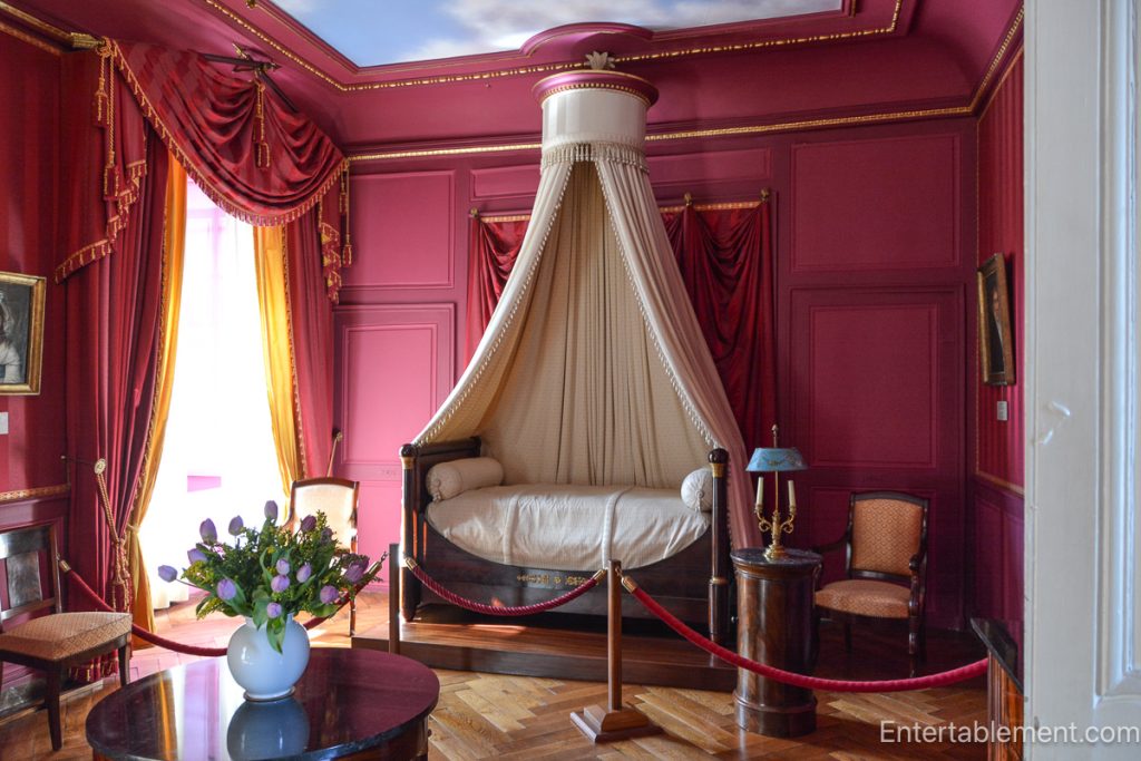 At Villandry, we see a subtle shift from theatricality toward privacy and nurture. The deep crimson room, with its Empire-style Lit à la Polonaise, incorporating a round or oval canopy supported by curved poles, was popular in the Rococo era.
