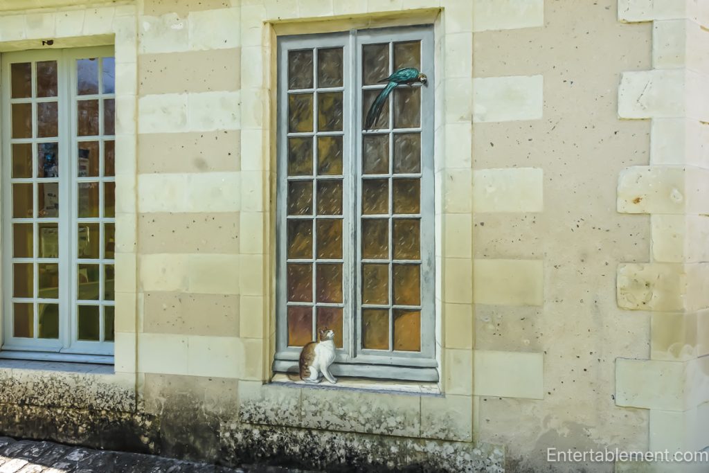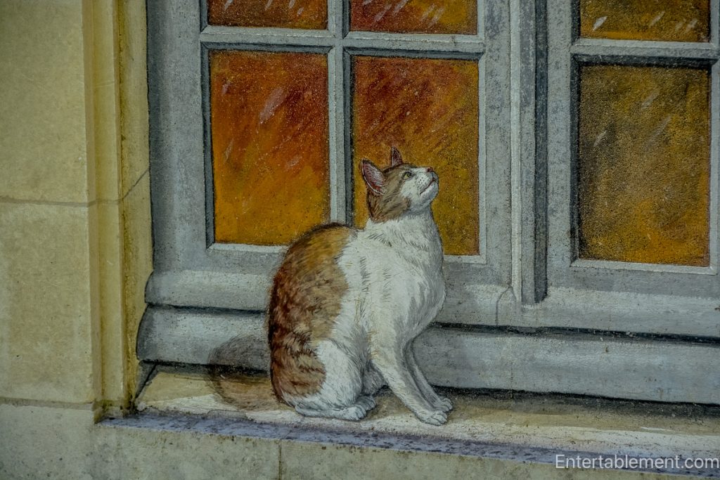 While the exterior is charmingly ornate with Baroque revival flourishes, the trompe l’oeil details steal the show, especially the painted ginger cat gazing into the window, and a parrot perched above, painted with such delicacy that they look startlingly lifelike.