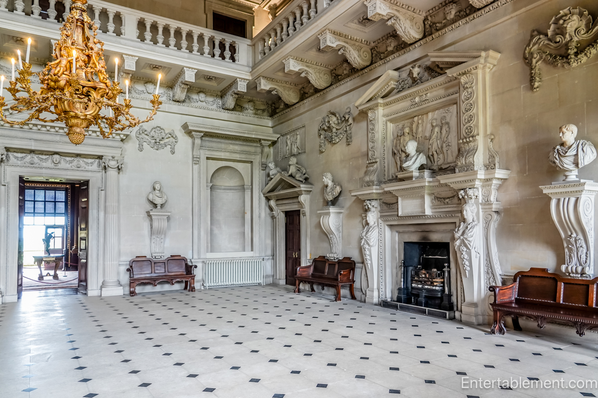 But go through and behold! A sweeping, double-height space with a richly carved wooden balustrade, intricate plasterwork, and walls painted en grisaille by William Kent.