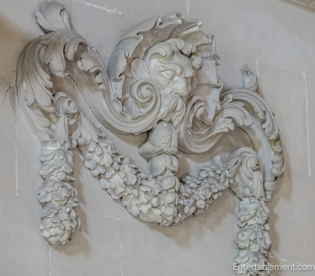 The faces of the gods in the swags.