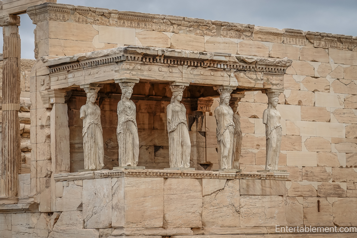 On the hill, the Acropolis stood as a reminder of ideals. Temples like the Parthenon and the Erechtheion — with its load-bearing Caryatids — spoke of beauty, proportion, and aspiration.